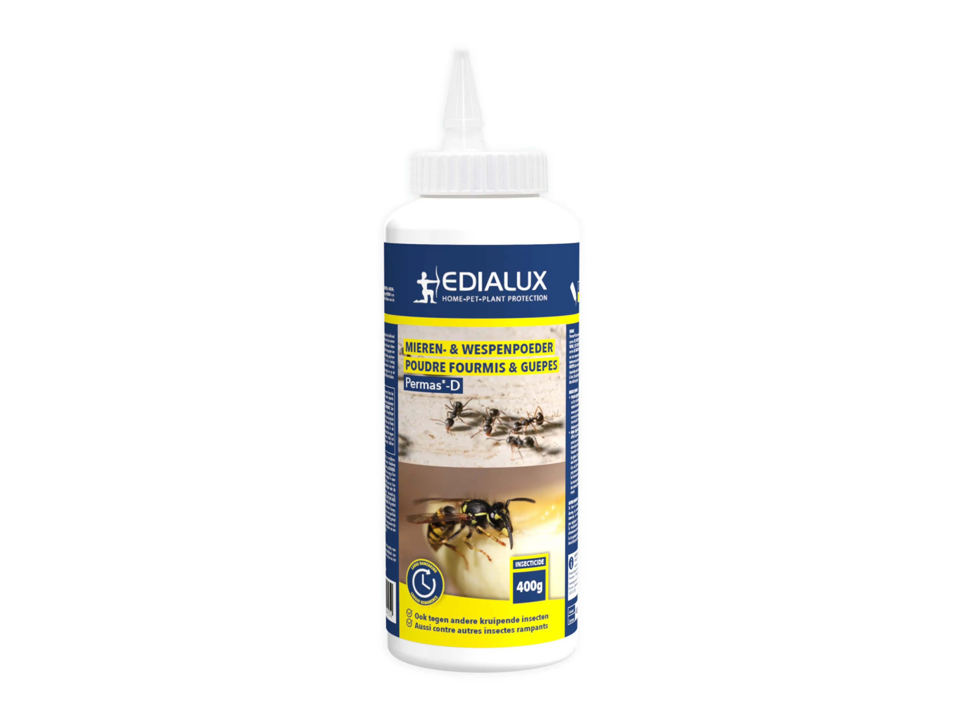 Permas D is een insecticide stuifpoeder met lange nawerking ter bestrijding van kruipende insecten in woon-, werk- en verblijfsplaatsen. Permas D is bijzonder geschikt voor plaatselijke toepassing tegen mieren en wespen in en rond de woning.