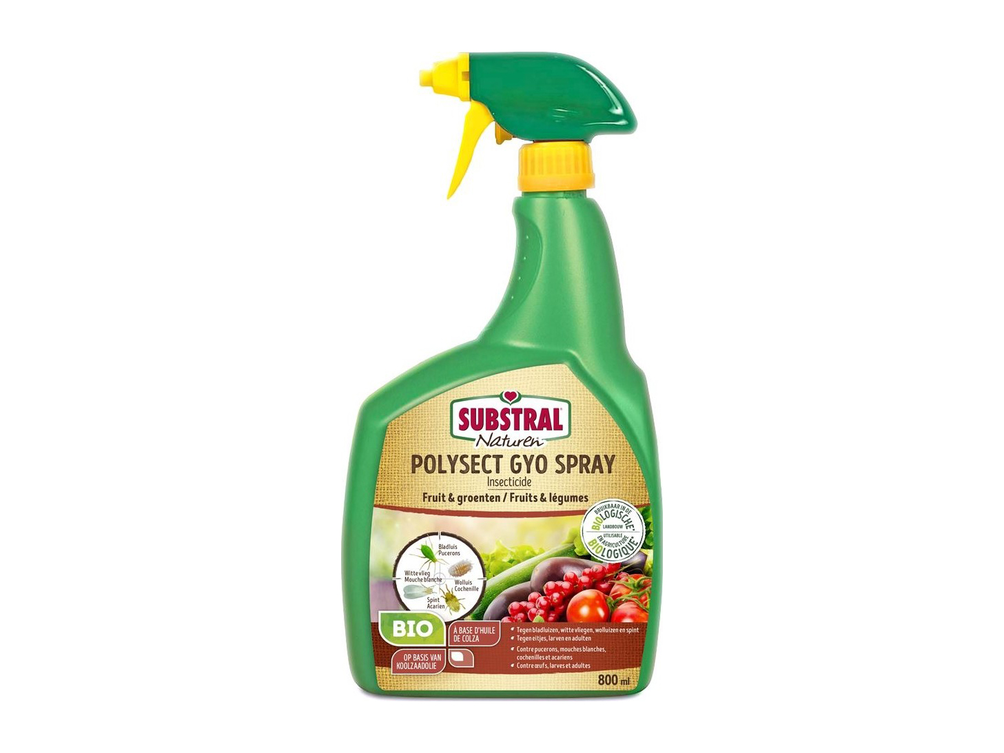 Substral Polysect GYO is een plantaardig insecticide dat een brede waaier aan insecten in de tuin bestrijdt, zoals bladluizen, wolluizen en spint op fruitbomen, groenten, sierbomen en -planten zoals rozelaars.