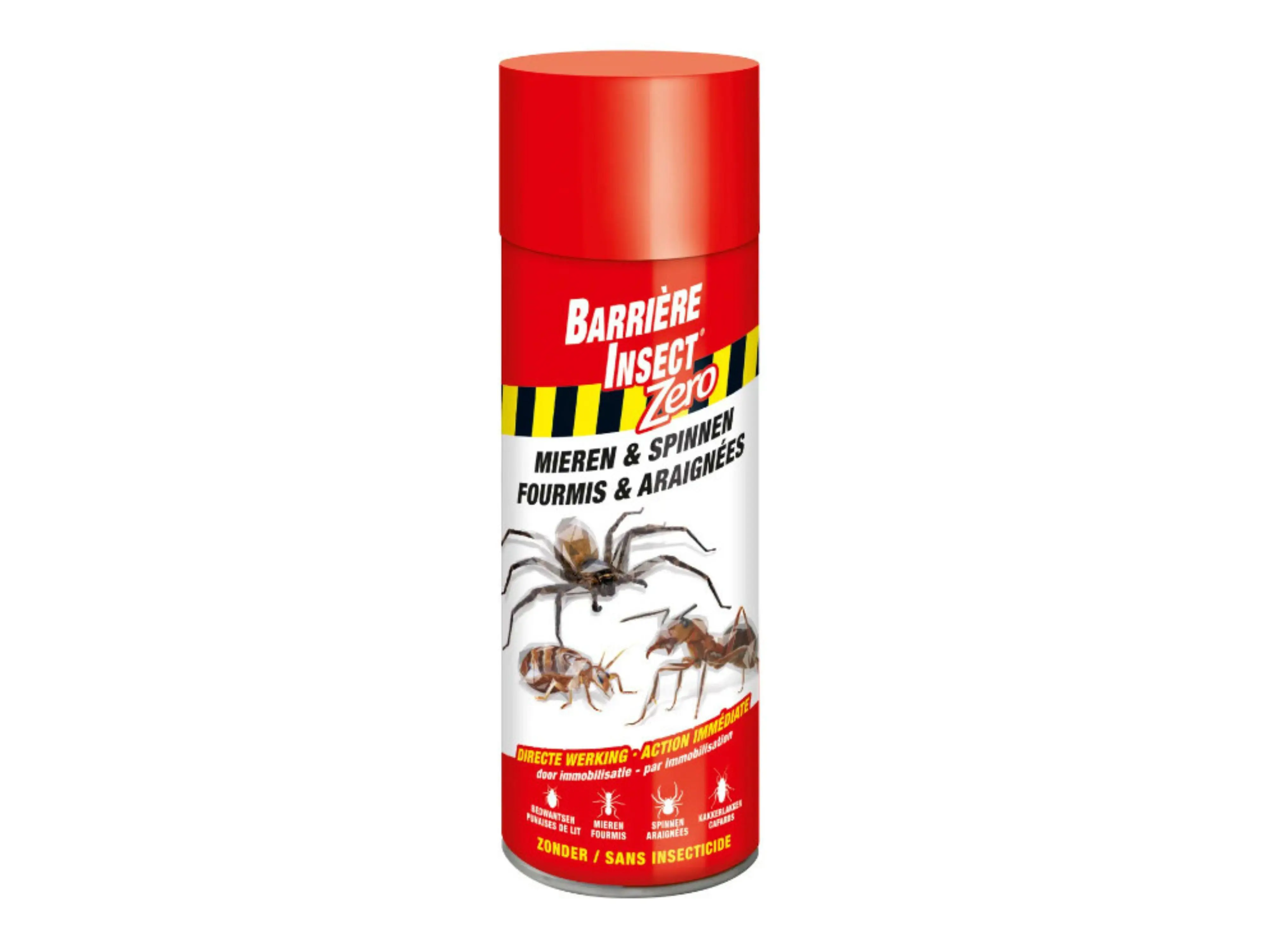 Barrière Insect Zero Mieren & Spinnen in een praktische spuitbus voor het bestrijden van kruipende insecten zoals mieren, spinnen en bedwantsen. Het is een innovatieve formule op basis van een organisch algenpolymeer waarbij een moleculaire structuur wordt gevormd (zoals een spinnenweb) die de insecten inkapselt en immobiliseert.