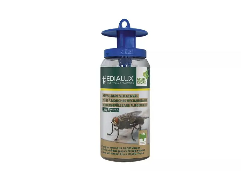 Easy Fly Trap van Edialux is een herbruikbare kunststof vliegenval gevuld met een professionele, oplosbare lokstof die vliegen aantrekt. De lokstof is ook afzonderlijk als navulling verkrijgbaar.