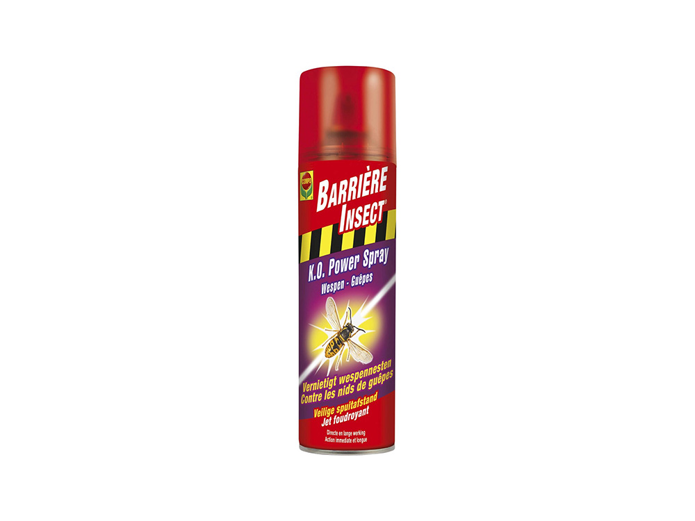 Barrière Insect Knock Out Power spray is een handige, gebruiksklare spuitbus ter bestrijding van wespen en wespennesten. De sterke spray laat het toe om vanop een veilige afstand een nest te vernietigen. Met een directe en lange werking tegen wespen.