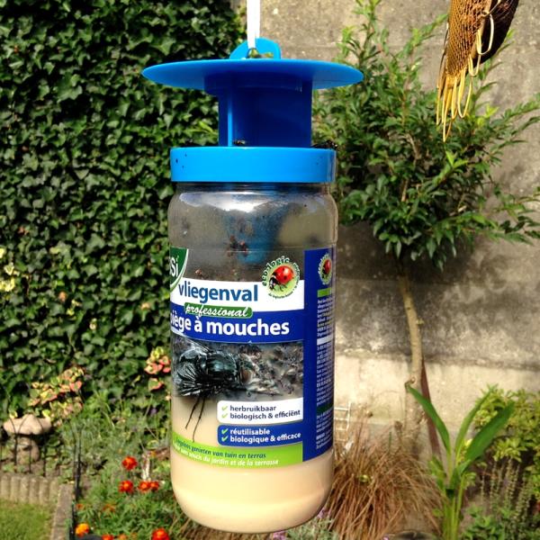 Heel doeltreffende, unieke val voor de meeste soorten vliegen. De vliegenval is herbruikbaar en vangt tot 20.000 vliegen per keer. Bestrijdt de vliegen buitenshuis én vermindert daardoor ook sterk het aantal vliegen dat binnenkomt.