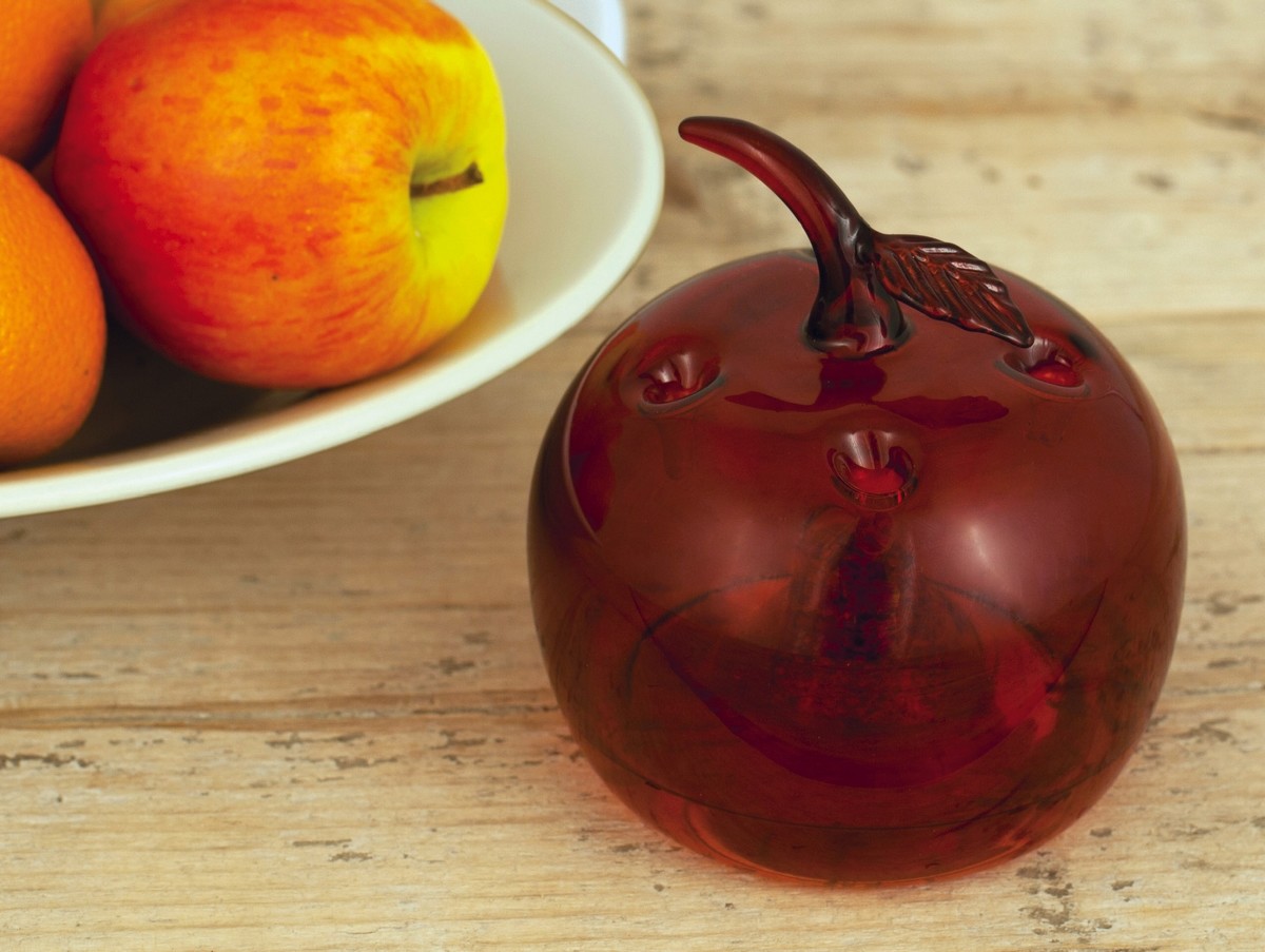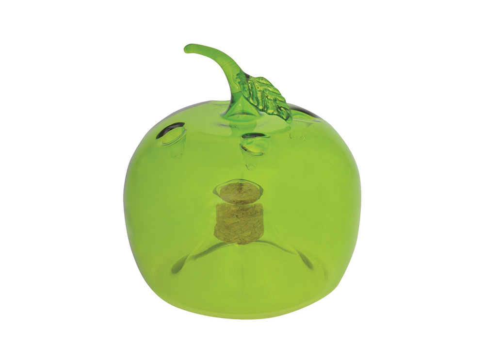 De vervelende fruitvliegjes zullen met alle gemak in deze aantrekkelijke fruitvliegenval kruipen, langsheen één van de 4 kleine openingen aan de bovenzijde van de glazen appel.