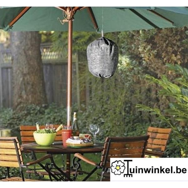 Dit nest is gemaakt van stof en heeft een trekkoord om af te sluiten en een ophanglus. Vul het nest eventueel met plastiekfolie en sluit hem af met de trekkoord, stop de uiteinden van deze koord binnenin het nest en hang omhoog met de lus. Hang de zak vervolgens aan de onderkant van een parasol, in een boom of aan de dakrand waar wespen je kunnen storen. Dit imitatienest zorgt ervoor dat er geen wespen in de buurt komen tenzij er binnen de 5 meter reeds een wespennest is gevestigd.
