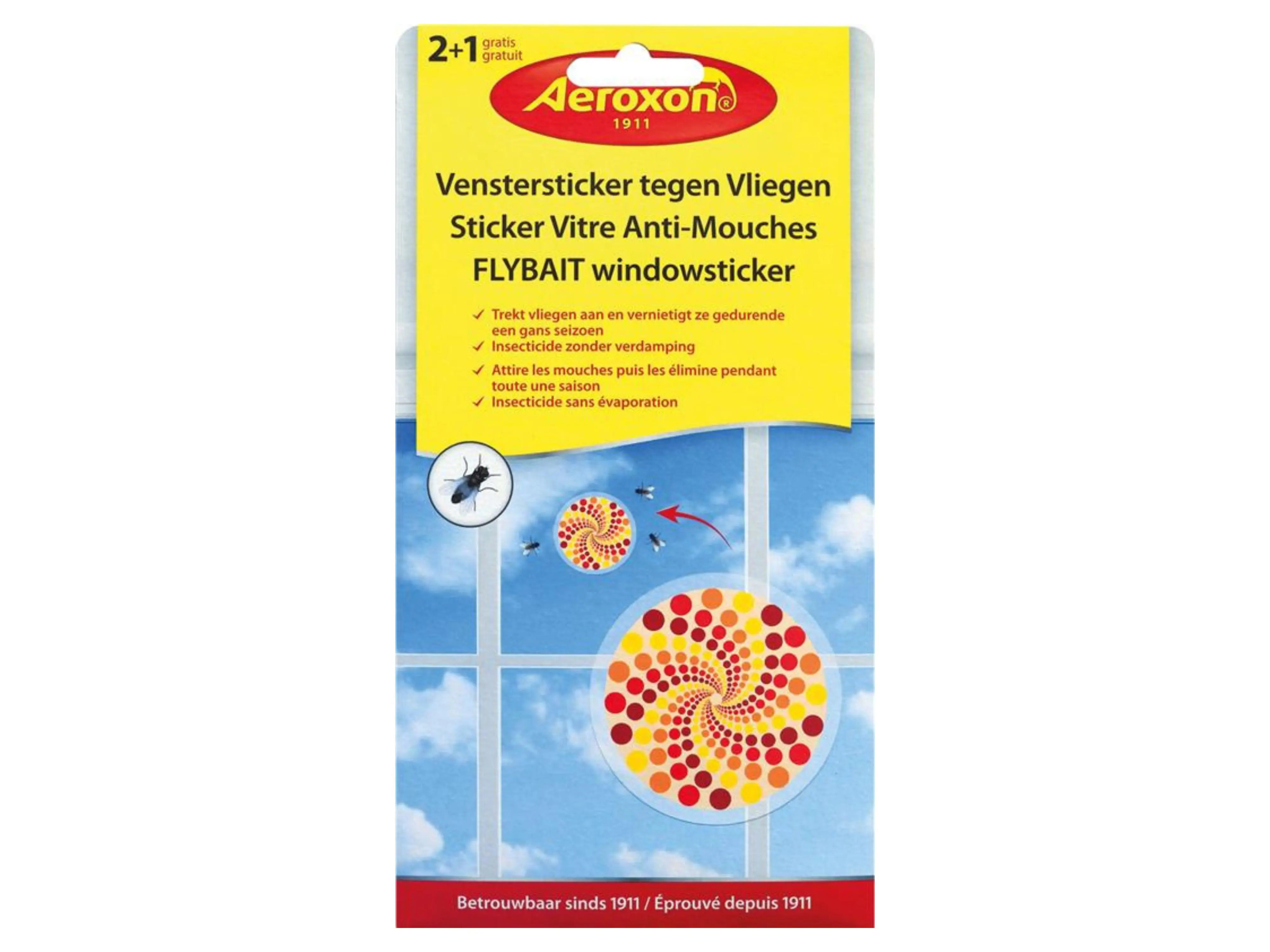 Decoratieve stickers met insecticide voor een effectieve bestrijding van vliegen in de woning. Eén sticker is werkzaam voor een volledig seizoen (tot 4 maanden afhankelijk van de ernst van de vliegenplaag).