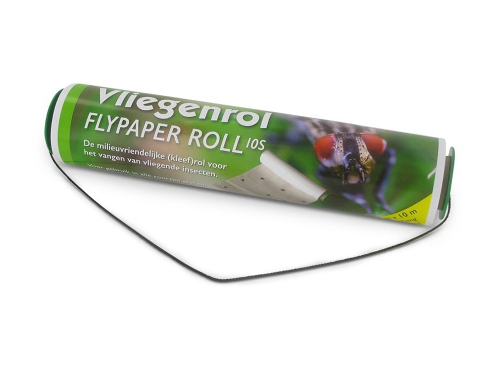 Vliegenrol met maar liefst 2,50 m² kleefpapier voor het eenvoudig vangen van vliegen in stallen, overdekte ruimten, opslagplaatsen en bedrijven.