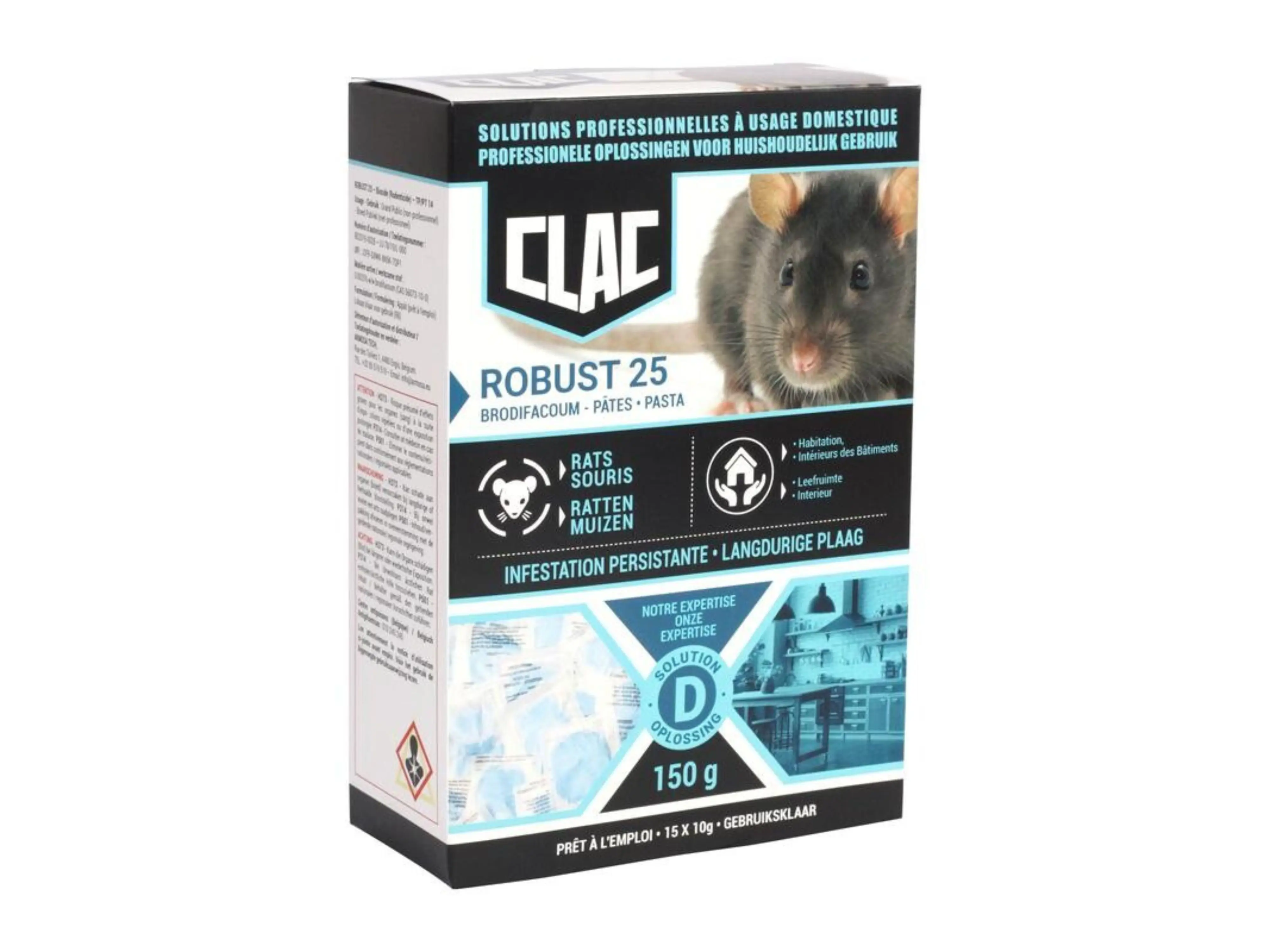 Deze vetrijke en zachte pasta zorgt ervoor dat het gif snel door het knaagdier wordt opgenomen, wat het ideaal maakt voor langdurige bestrijding. Robust 25 is perfect voor het bestrijden van ratten en muizen in droge of licht vochtige omgevingen, zoals woningen en leefruimtes. De pasta valt niet uit elkaar en werkt zelfs als er ander voedsel aanwezig is.