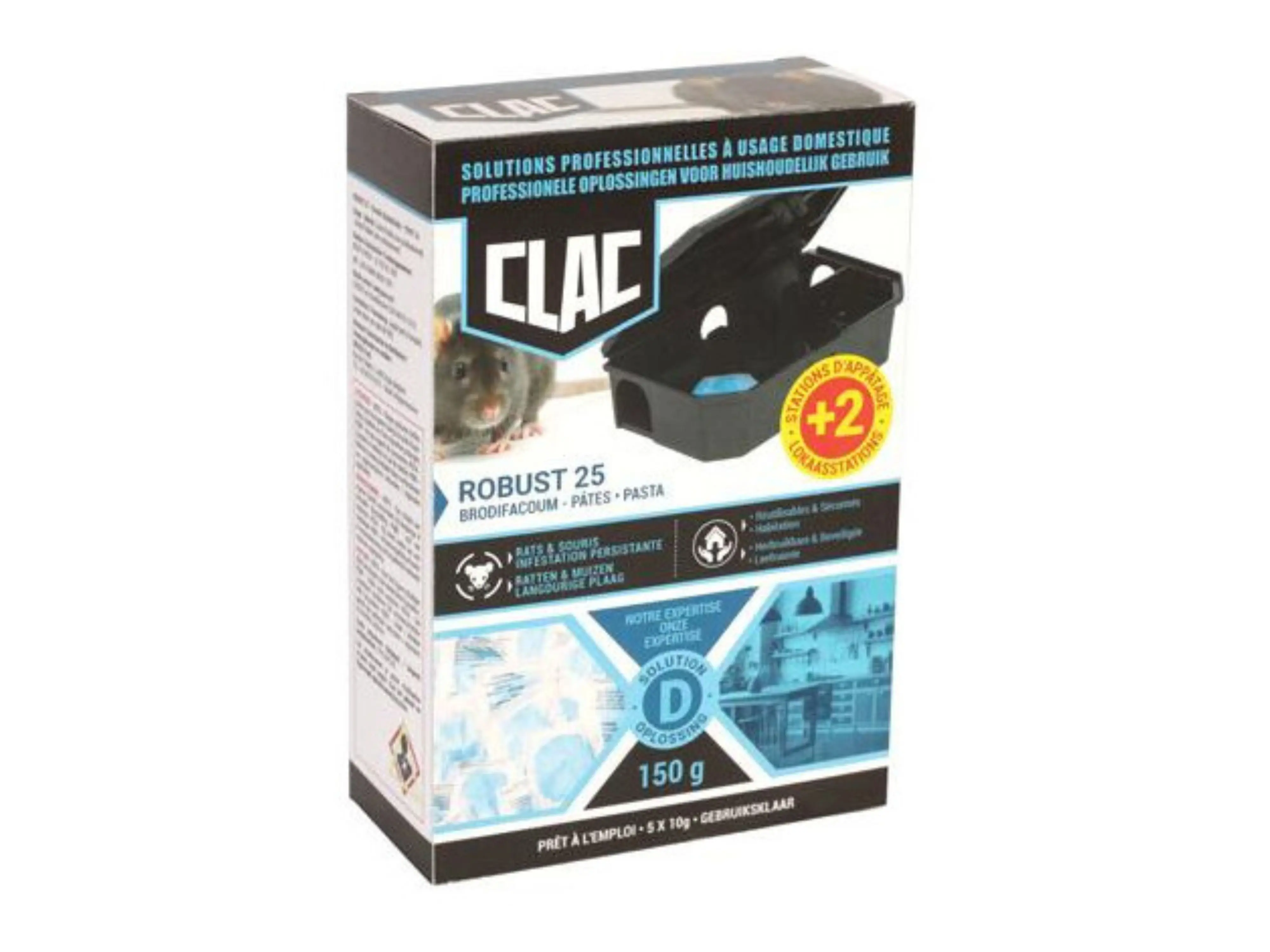 Een set van 2 gevulde (pre-baited) lokaasdozen met 50 g zachte en vetrijke pasta tegen muizen, klaar voor gebruik. De lokaasdozen zijn afsluitbaar met de meegeleverde sleutel en er is ook een mogelijkheid om de lokaasdozen aan de muur te bevestigen.