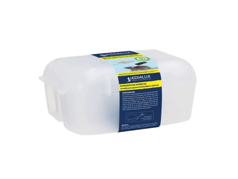 Een rattenlokaasdoos met binnenin een stevige val, die je gemakkelijk van buitenaf kan opspannen, zodat je veilig en hygiënisch ratten kan bestrijden. Dit heeft als voordeel dat kinderen maar ook katten, honden en andere huisdieren niet ongewild met de klem in aanraking kunnen komen. De transparante lokaasdoos maakt het mogelijk om de vangst gemakkelijk te controleren.