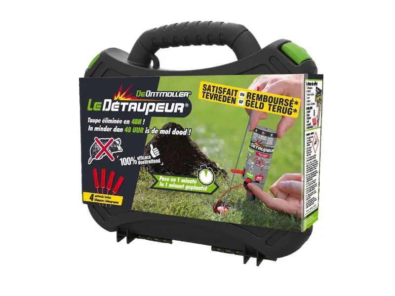 De Ontmoller is een krachtige en efficiënte mollenval die gebruikmaakt van het natuurlijke gedrag van de mol. Mollen hebben de neiging om openingen in hun gangenstelsel onmiddellijk te dichten. Precies dat gedrag wordt slim benut om ze doelgericht te bestrijden.