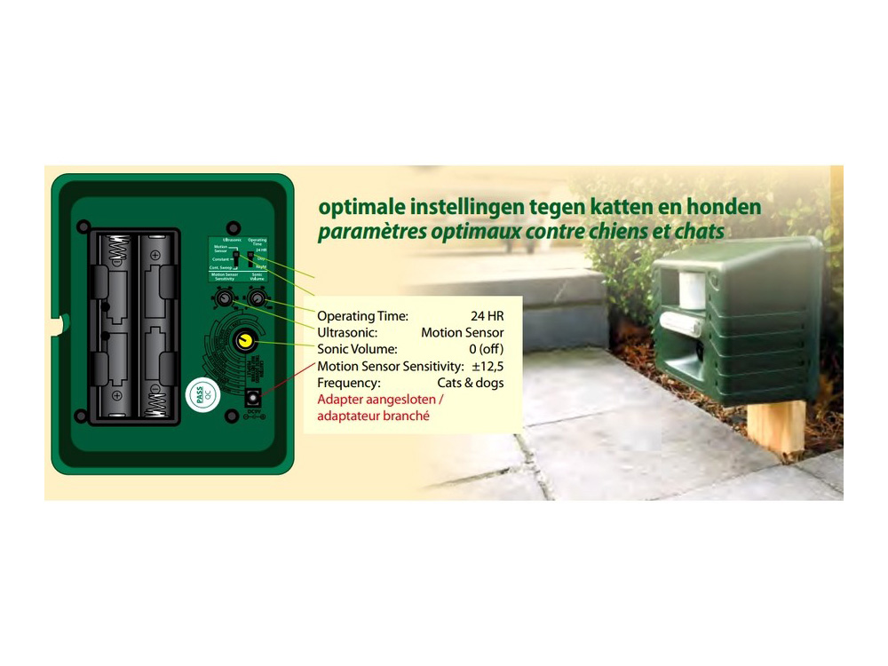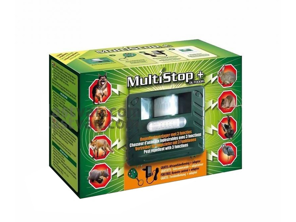 Last van ongewenste dieren in je tuin? Met de Multistop Outdoor+ van BSI verjaag je gemakkelijk honden, katten, vogels, konijnen,... uit je tuin. Het ultrasone toestel heeft een bereik van 500 m². De verjager is voorzien van een bewegingssensor zodat het apparaat in werking wordt gesteld als de te verjagen dieren in de buurt zijn. Je kan de gevoelighid van de sensor ook instellen. Hij detecteert beweging binnen een straal van 23 meter, in een hoek van 170° horizontaal en 60° verticaal.