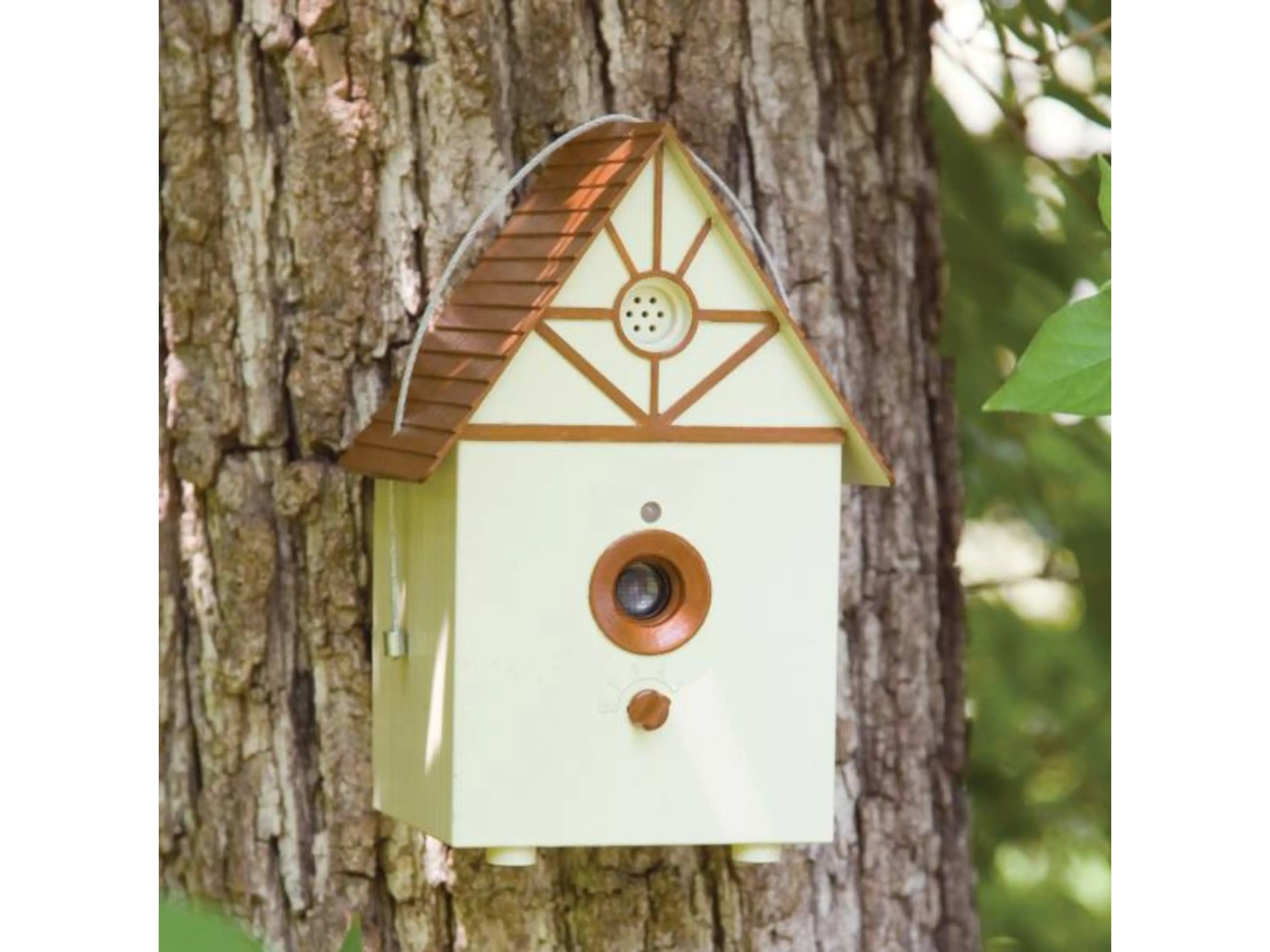 Dit ultrasone anti-blaf toestel dat lijkt op een vogelhuisje, detecteert hondengeblaf en reageert op geblaf door het uitsturen van ultrasoon geluiden. Dat ultrasoon geluid kan niet door mensen worden waargenomen, maar wel door honden. Ze vinden het geluid onaangenaam en al snel hebben ze door dat dit geluid pas te horen is nadat ze zelf blaffen, waardoor ze het blaffen in de buurt van het vogelhuisje afleren.
