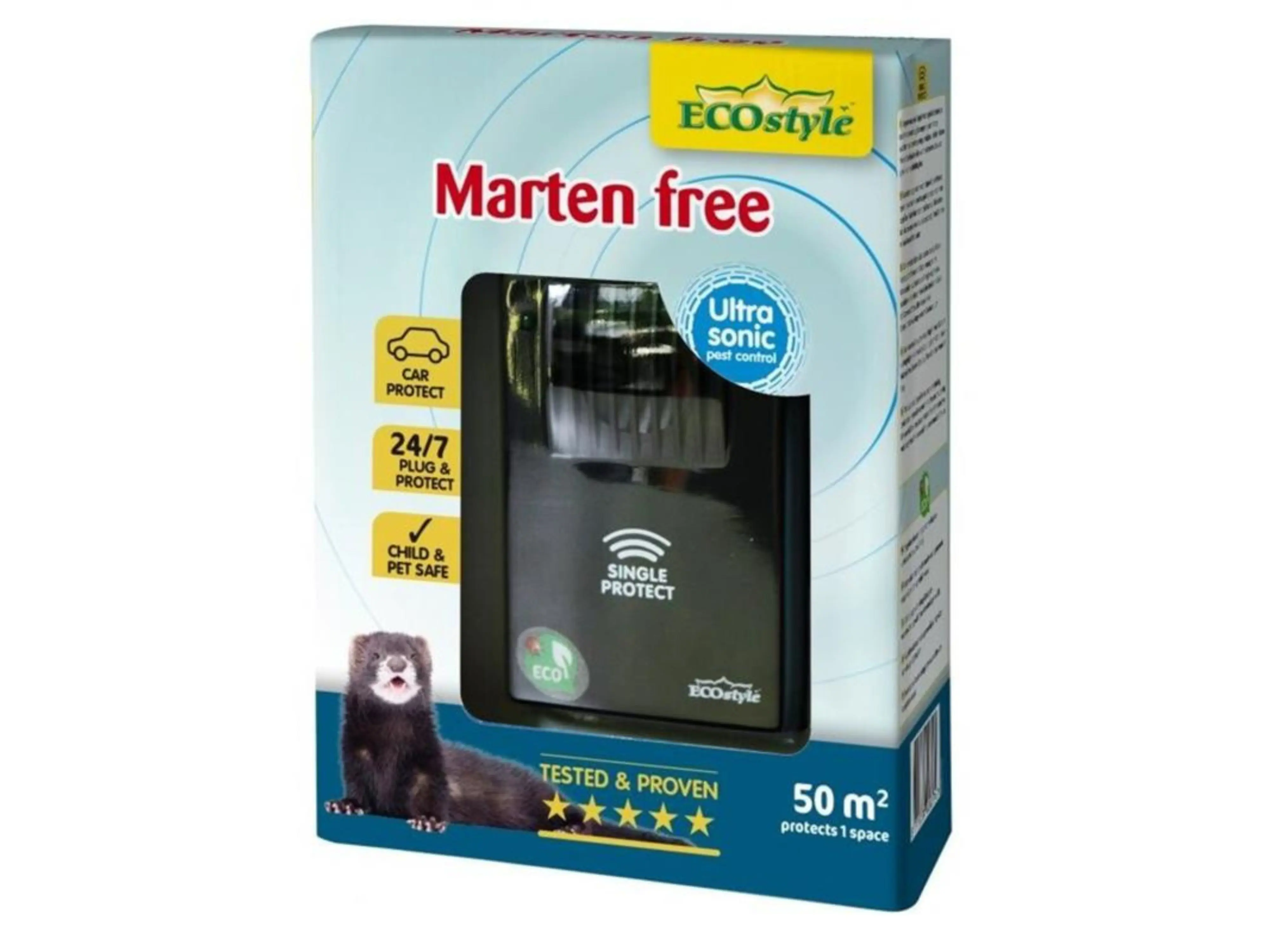 Ecostyle Marten Free beschermt jouw leefomgeving tegen marters. Het verjagen gebeurt met geluid, waardoor een marter het geen fijne leefomgeving vindt en vervolgens vertrekt. Effectief, hygiënisch en zonder gebruik van gif.
