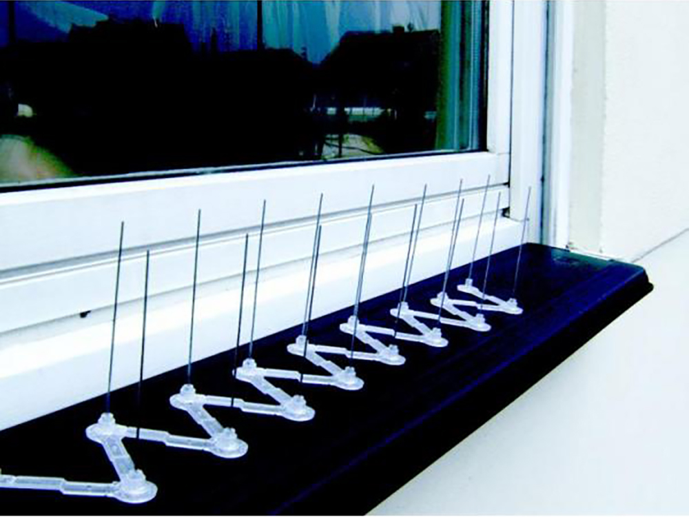 Eenvoudig te monteren afweerinstallatie tegen duiven met handige clips en pinnen. Te gebruiken op iedere vensterbank of eender welk te beschermen ornament.