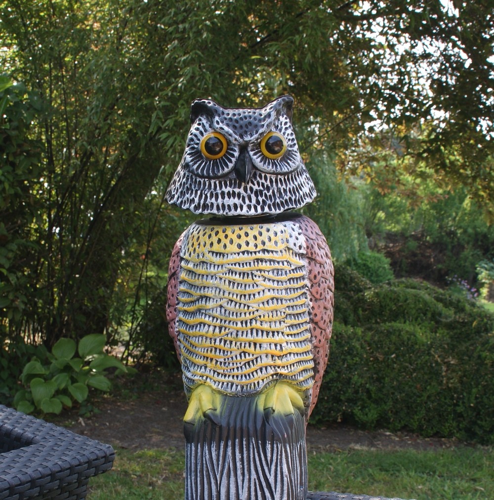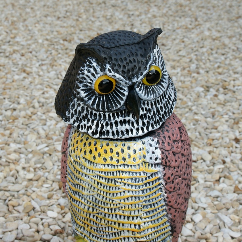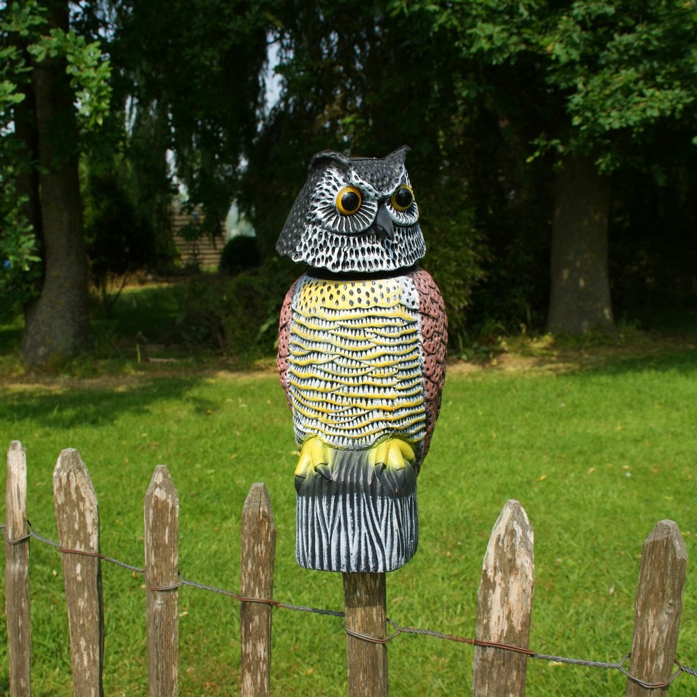 De kop begint al vrij snel te bewegen als er een klein beetje wind is. De vorm van de uil in combinatie met de bewegende kop en reflecterende ogen zullen het ongedierte in geen geval ontgaan. De voet van de uil kan worden verzwaard met kiezels of zand zodat de uil niet kan omwaaien.