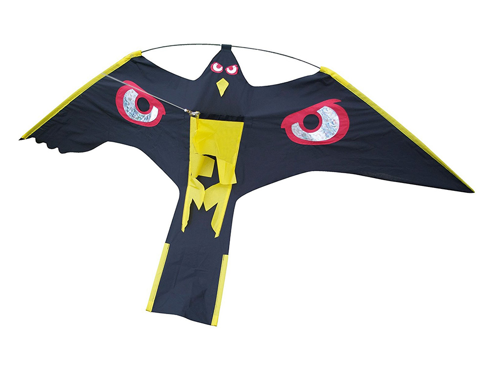 De grote zwarte vogels zijn voorzien van afschrikwekkend grote, rode reflecterende ogen. De Kite Hawk wordt geleverd met een stevige telescopische paal in glasvezel van 10 meter waaraan je de vogels vast maakt. Er wordt ook een grondanker meegeleverd. Dit maakt de Kite Hawk ideaal voor het beschermen van gewassen, boomgaarden, pas gezaaide gazons, vijvers,...