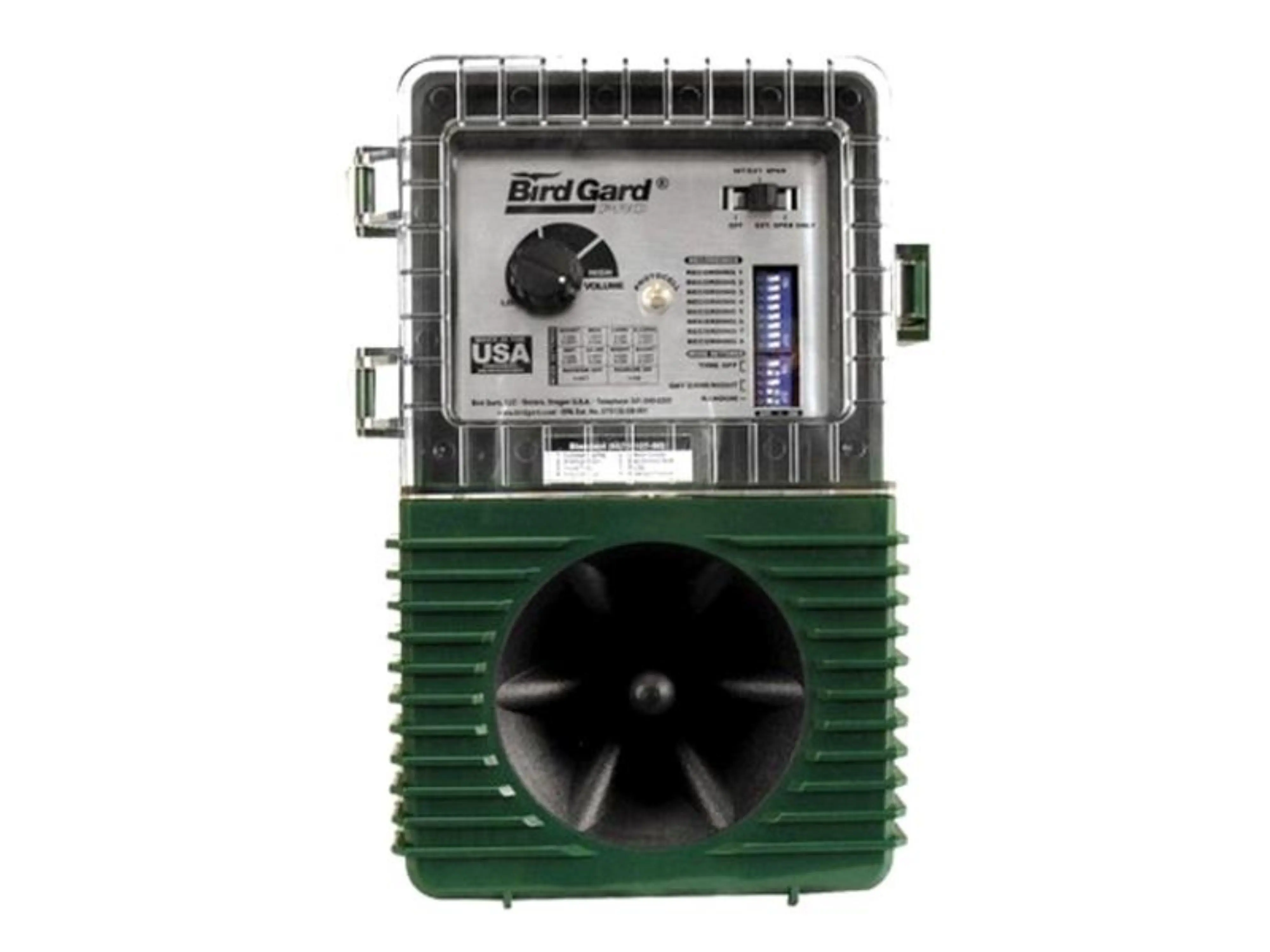 Deze professionele vogelverjager met een bereik tot 6000 m² maakt 8 verschillende geluiden van roofvogels en noodkreten van de specifiek te verjagen vogels. Instelbaar in volume, lengte, soort vogel, tijdklok, willekeurig tijdstip (dag, nacht, 24 uur). De opgenomen vogelgeluiden zijn paniekroepen van de desbetreffende vogelsoort. Wanneer een vogel van dezelfde soort die noodkreten hoort, zal hij vluchten omdat hij denkt dat hij in gevaar is. Andere opgenomen geluiden zijn die van roofvogels, waardoor bepaalde vogelsoorten ook zullen vluchten omdat ze gevaar vermoeden.