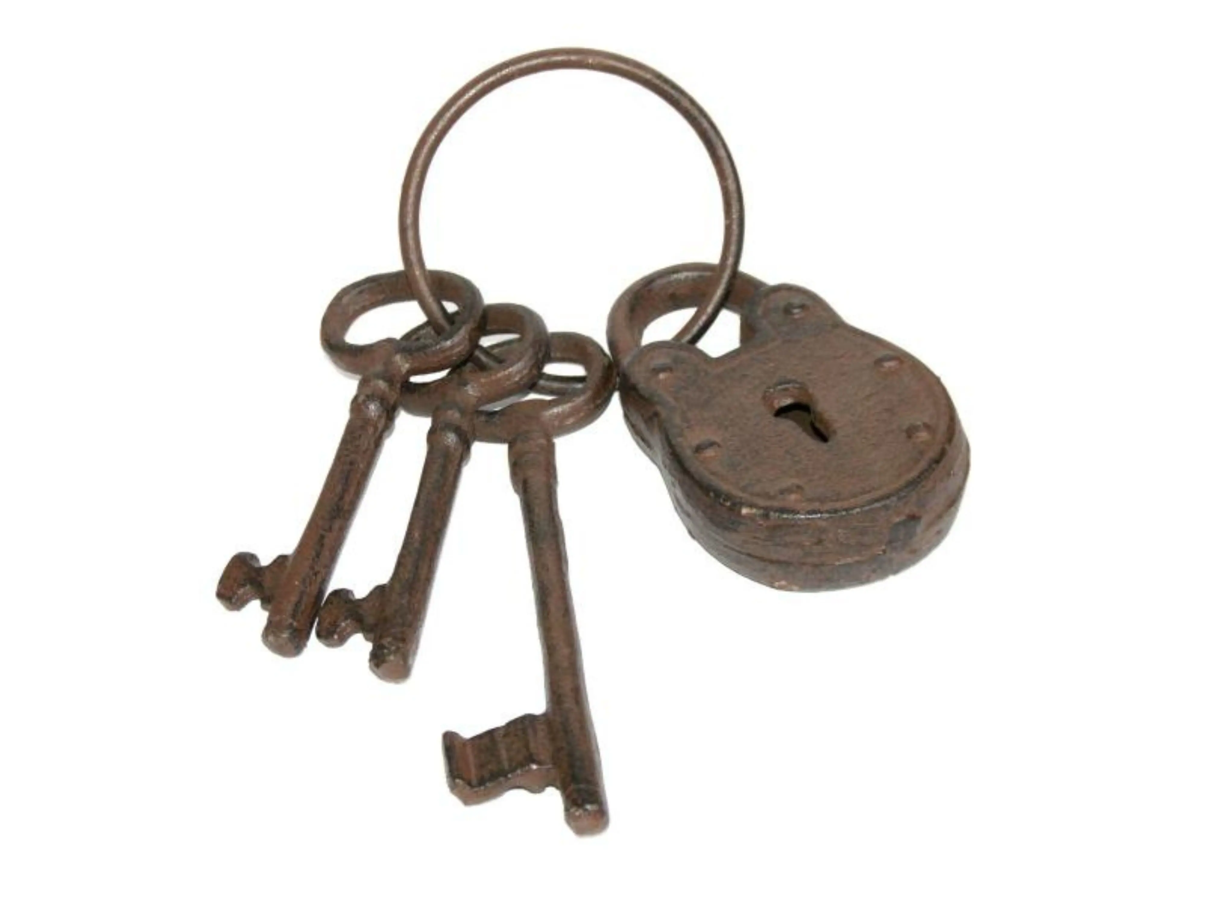• Bestaat uit 3 decoratieve sleutels en een klassiek slot
