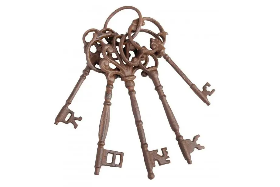 De vijf grote sleutels, met een 'old rust look', zijn gemaakt van gietijzer en vervaardigd met eeuwenoud vakmanschap en traditie, elk stuk met de hand gegoten.