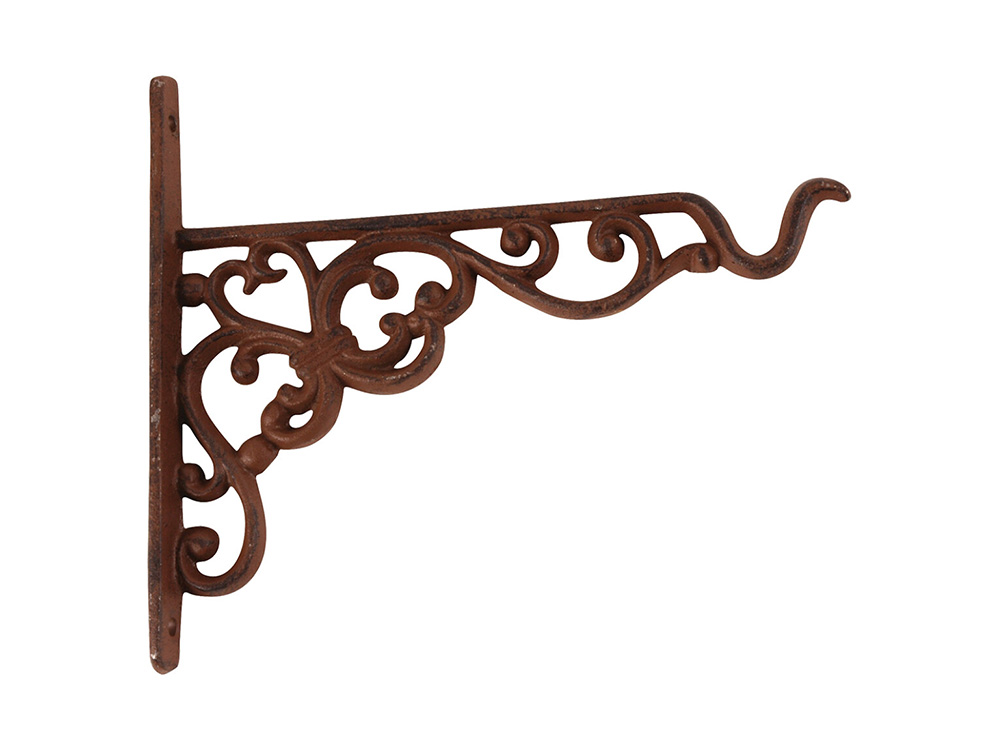 Deze gietijzeren wandhaak van Esschert Design maakt het makkelijk om bloempotten of hangmanden aan op te hangen.