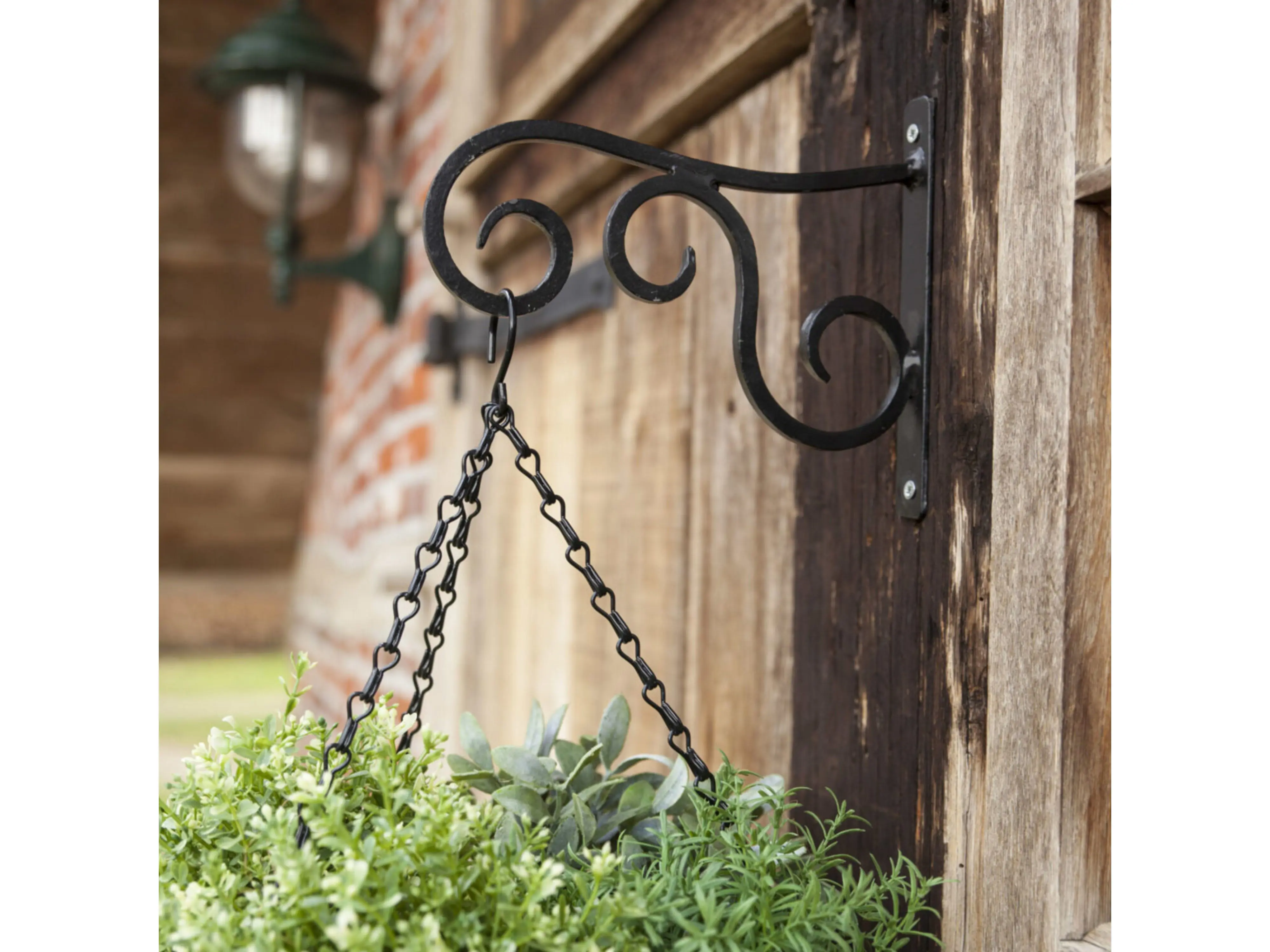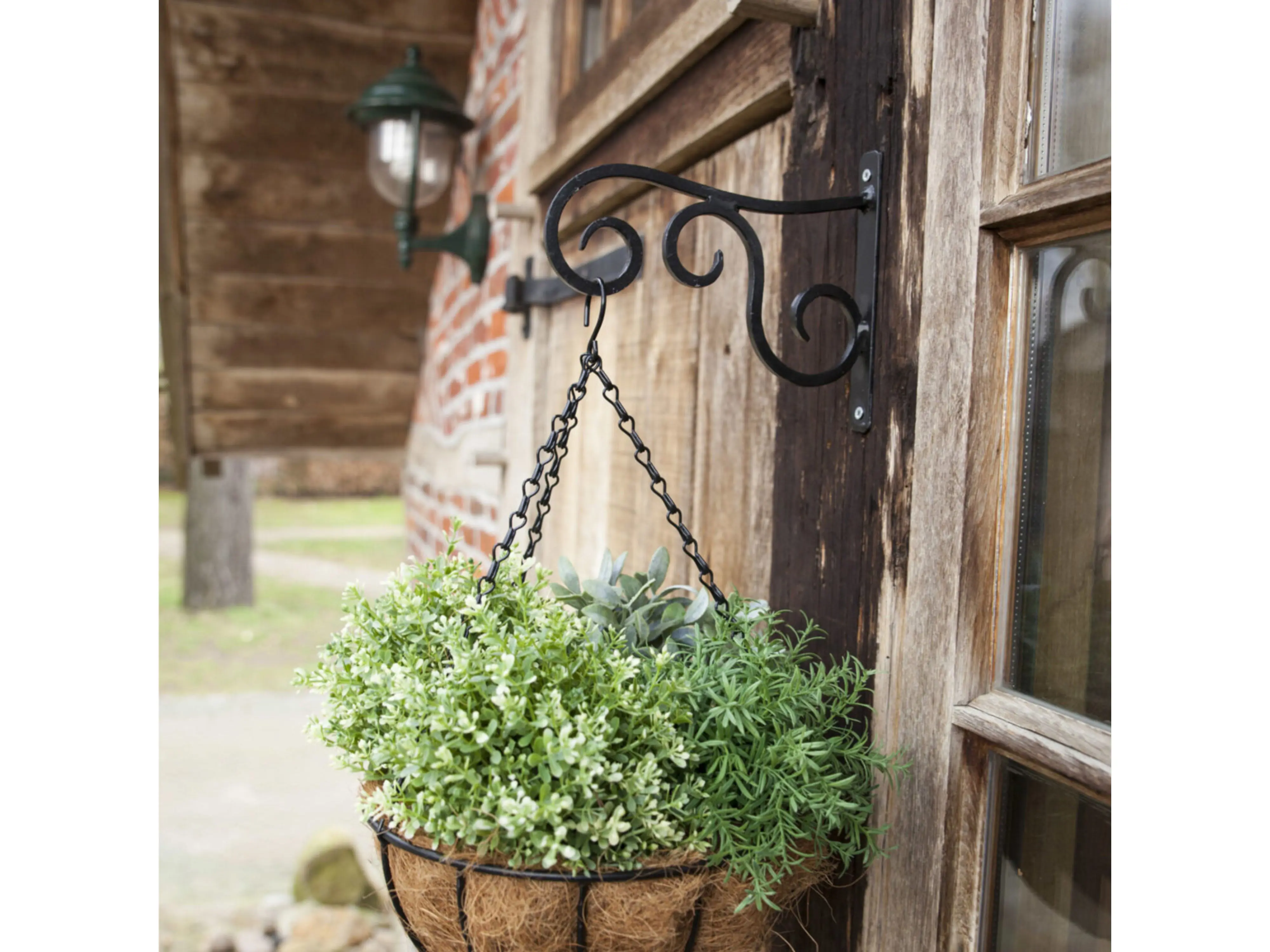 Deze klassieke hanging basket haak met elegante, sierlijke krullen is de perfecte combinatie van functionaliteit en decoratie. De haak is speciaal ontworpen voor het ophangen van hanging baskets, maar is ook uitermate geschikt voor lantaarns, vogelvoederhuisjes of tuindecoraties.