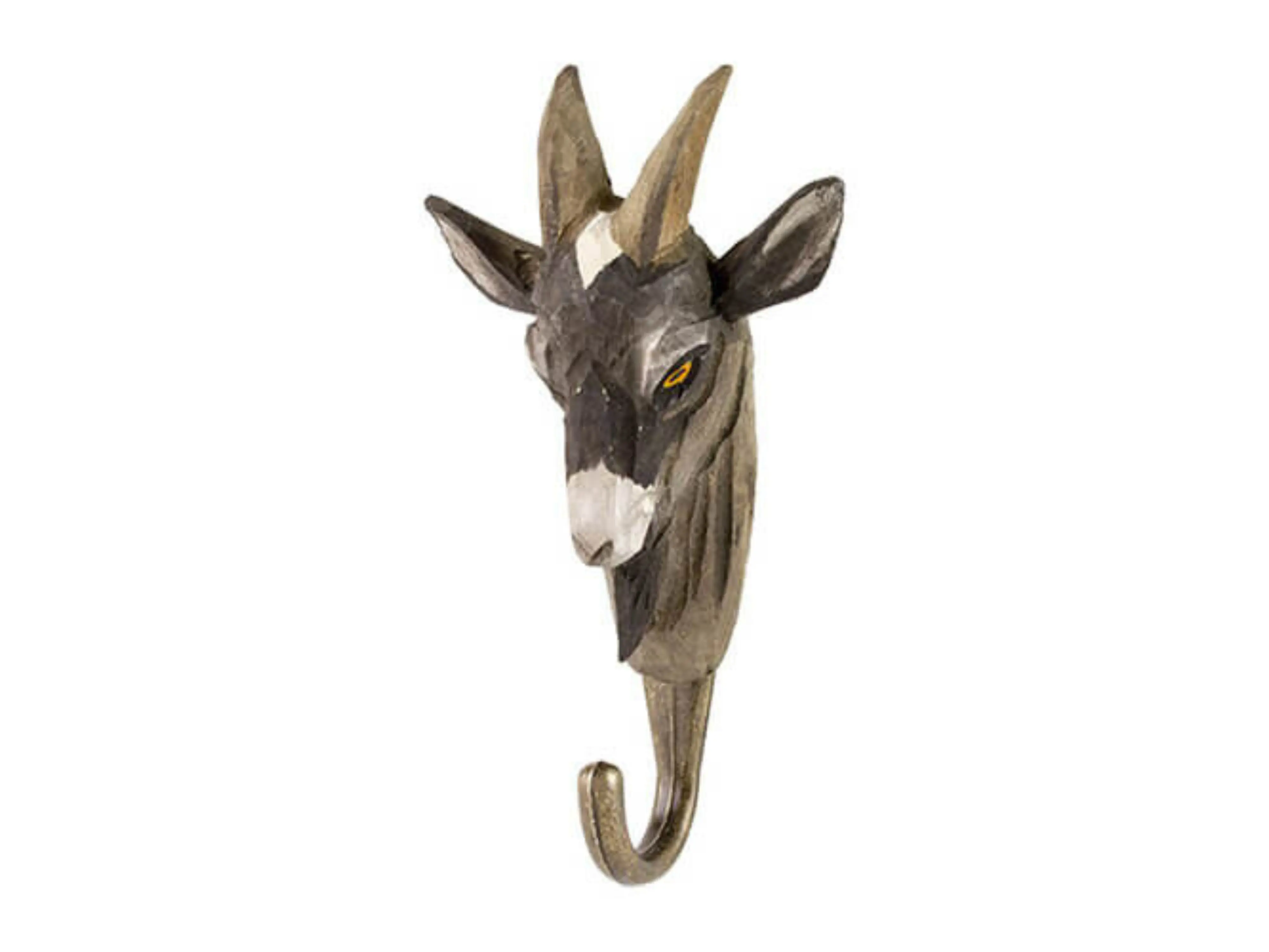 Deze prachtige haak in de vorm van een geit is een unieke decoratie en fleurt elke ruimte in de woning meteen op. Ook leuk om te combineren met andere boerderijdieren uit de reeks.
