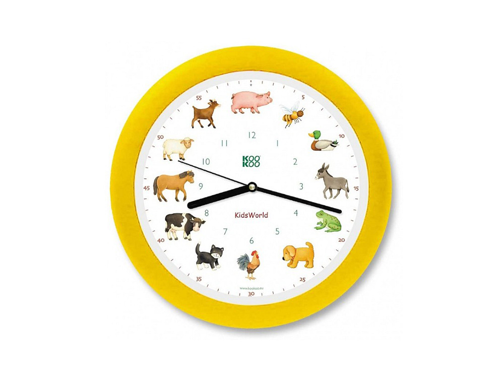 Een originele KOOKOO klok met geluiden van allerlei boerderijdieren, leuk voor jong en oud! Ieder uur hoor je het geluid van een ander dier, net zoals je op een boerdeij woont. Het geluid van het varken, de koe, de poes, de haan,.... is natuurgetrouw en bij ieder uur staat ook een mooie tekening van het bijhorende dier. Een echt leuk hebbeding voor op de kinderkamer. Op die manier leren jouw kinderen op een speelse manier het uur te lezen en dieren te herkennen.