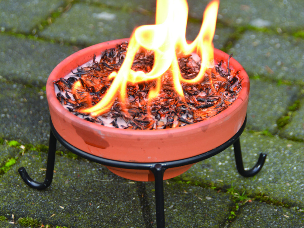 Deze stalen houder van Esschert Design biedt een veilige en verhoogde plek voor het afbranden van een [product=3]31079-vuurpot[/product] waardoor een sfeervolle en volle vlam ontstaat. Dankzij de houder kan de pot op elke gewenste plek in de tuin worden geplaatst. Zorg er echter voor dat er voldoende ruimte vrij is rondom de pot.