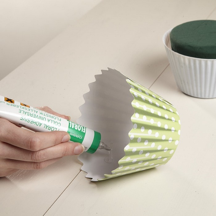 De lijm mag op de stengel of het blad aangebracht worden. Met deze koudlijm blijven bloemen, bladeren, parels, linten, schors, takjes, … stevig op hun plaats. Ook toepasbaar op glas, hout en keramiek.