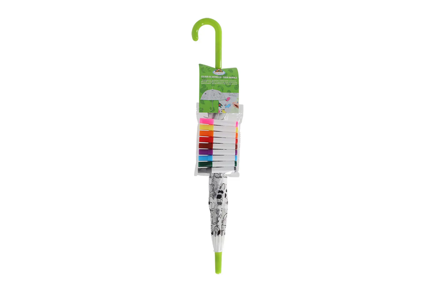 Maak van een regenachtige dag een waar festijn met onze 'Paint it Yourself' paraplu, versierd met allerlei schattige dieren. Deze kinderparaplu kan volledig naar eigen wens ingekleurd worden, want hij wordt geleverd met een set kleurrijke stiften. Zo kunnen kinderen hun eigen meesterwerk creëeren!