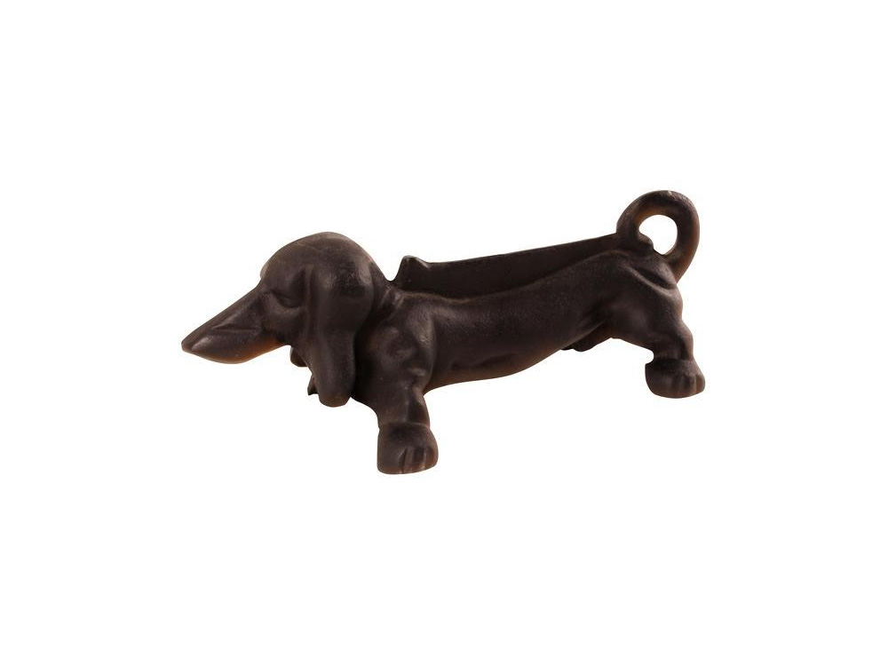 Charmante gietijzeren schoenschraper in de vorm van een teckel, een geliefde hond die iedereen doet glimlachen. Deze stijlvolle en functionele schoenschraper is met de hand vervaardigd, wat zorgt voor een robuuste afwerking en langdurige duurzaamheid.