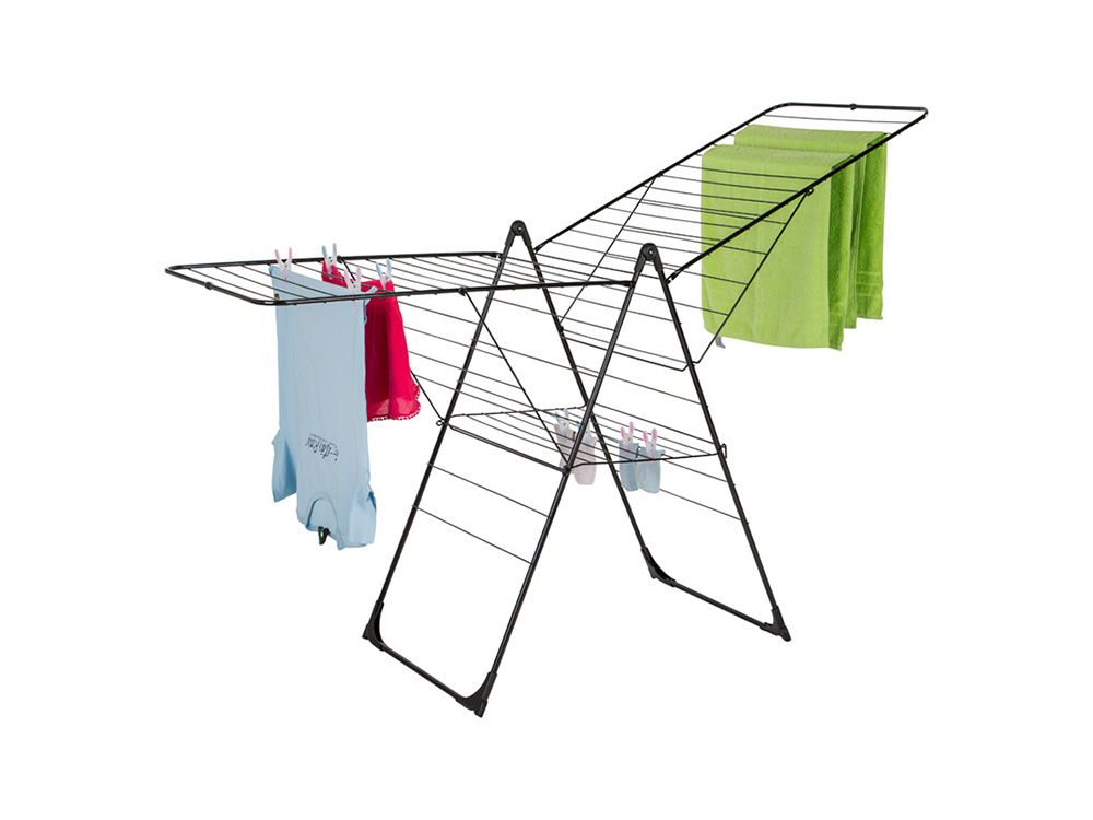 Dit grote droogrek T-model heeft maar liefst 33 meter drooglijn, goed voor korte tot lange kledij, handdoeken en lakens. Het kan eenvoudig worden opengeklapt en terug compact worden opgeborden als de was droog is. Dankzij de stevige scharnieren en de verstevigde voetjes staat het wasrek steeds stabiel, ook als het zwaar beladen is. Heb je weinig plaats dan kan het rek ook aan één zijde worden open geklapt.