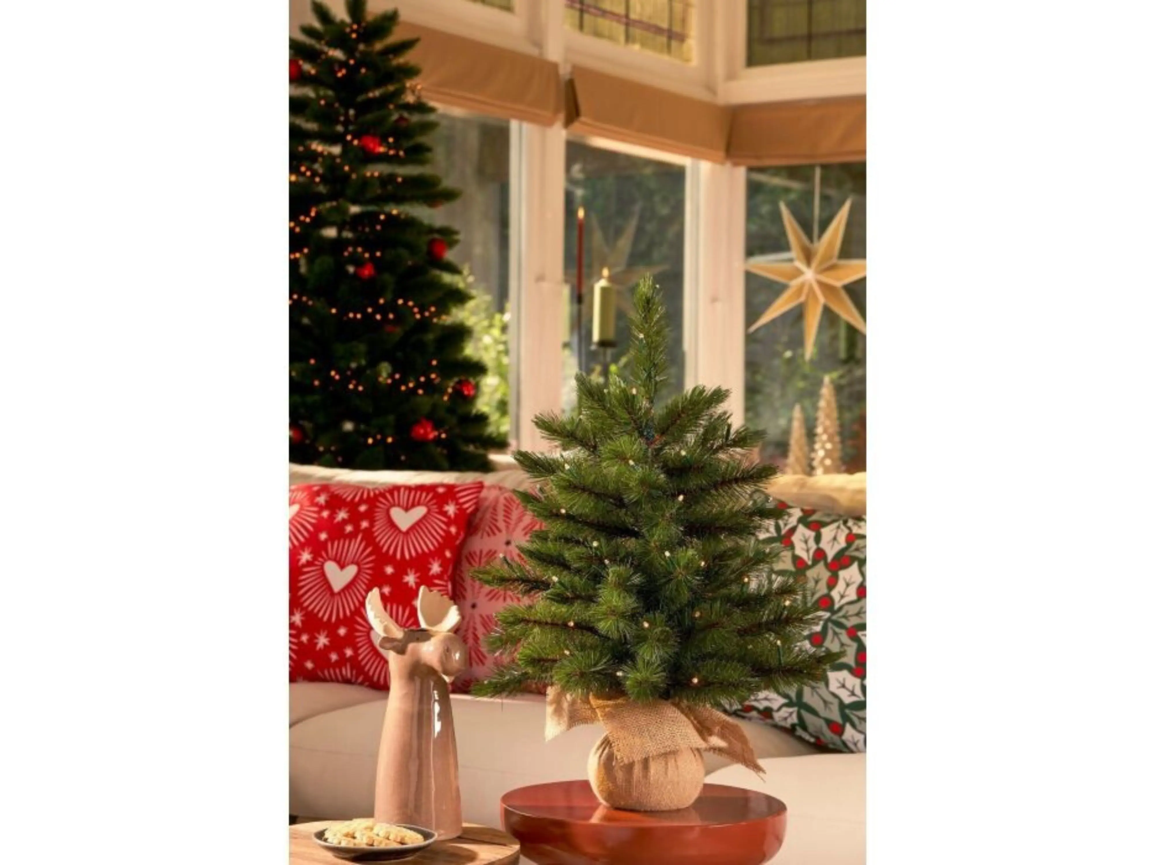 Forest Frosted is een mini kerstboom uit de collectie van Triumph Tree. Hij zorgt voor kerstsfeer in alle kamers van de woning en ook op kantoor zal hij beeldig staan. De kleine kerstboom is voorzien van een verzwaarde voet die afgewerkt is met jute. Hierdoor staat hij stabiel op zich en hoeft hij niet in een sierpot geplaatst te worden.