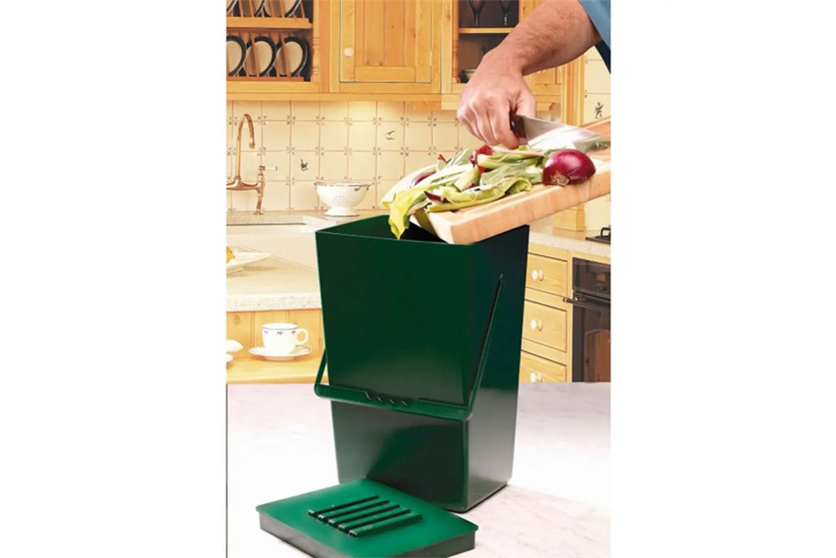 Deze keukenafvalemmer is ideaal voor het verzamelen van composteerbaar keukenafval. In het deksel zit een eenvoudig te vervangen actieve koolstoffilter die de onaangename geurtjes absorbeert. Daarom hoef je de emmer enkel te ledigen als deze vol is. De emmer is voorzien van een stevig handvat met uitsparingen voor extra vingergrip waardoor hij aangenaam in de hand ligt.