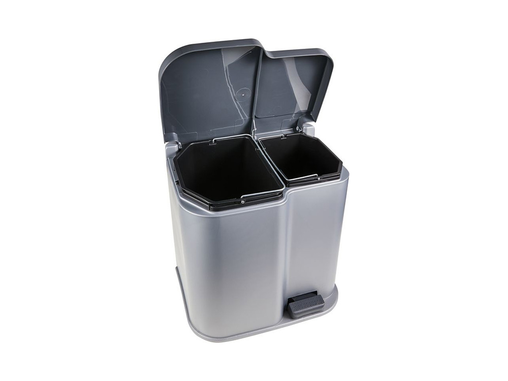 Afval sorteren begint thuis. Dankzij deze pedaalemmer met 2 aparte binnenemmers wordt het scheiden van afval kinderspel. De vuilbak van kunststof opent zijn deksel na een druk op het voetpedaal, binnenin ontdek je een emmer met inhoud van 14 liter, en een emmer met inhoud van 7 liter. Beide binnenemmers hebben een handvat, onmisbaar voor het ledigen van de vuilbak.