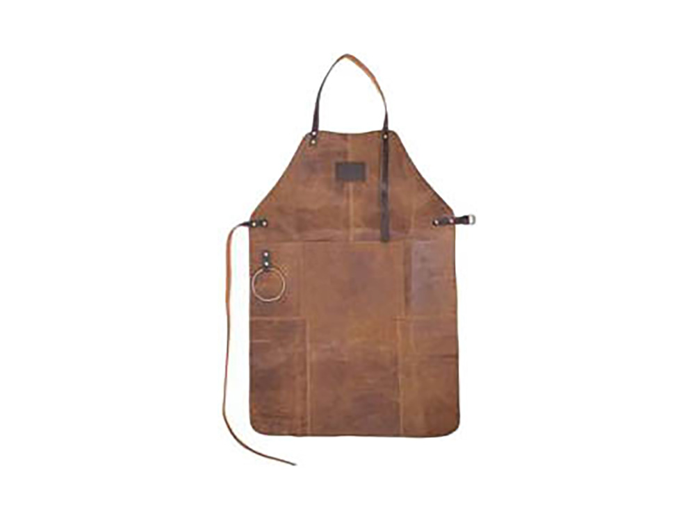 Lederen barbecueschort met verstelbare band aan de nek, alsook aan de zijkant. Deze schort is onmisbaar voor elke barbecueliefhebber. De schort beschermt jouw kleding tegen hitte en de vuurspetters en gaat jarenlang mee door de hoge kwaliteit van het leer. Daarnaast is de schort voorzien van een handdoekhouder, een metalen ring aan de zijkant van de schort.