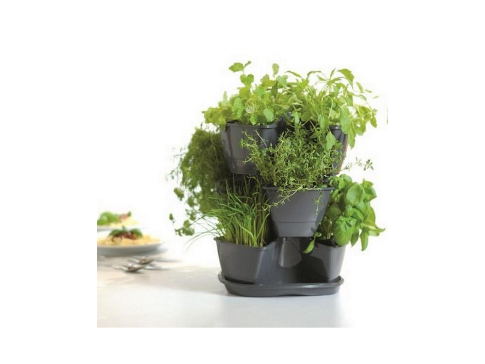 Deze antraciete kruidentoren is een leuke aanvulling op het terras of zelf in de keuken. De toren bestaat uit drie lagen en is goed voor zo'n 10 kruidensoorten. Uiteraard kan de toren ook met andere planten zoals viooltjes of aardbeien worden gevuld!