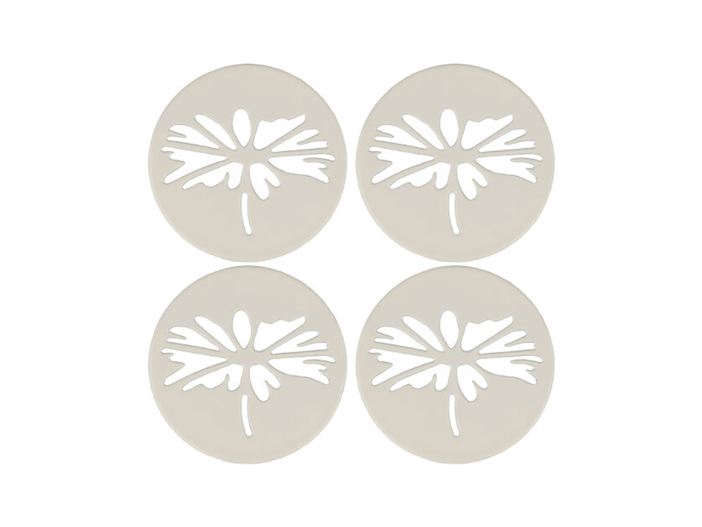 De gewichtjes met een geperforeerd madeliefjespatroon zijn gemaakt van staal en worden vastgehouden aan de achterkant van het tafelkleed met een zwarte magneet.