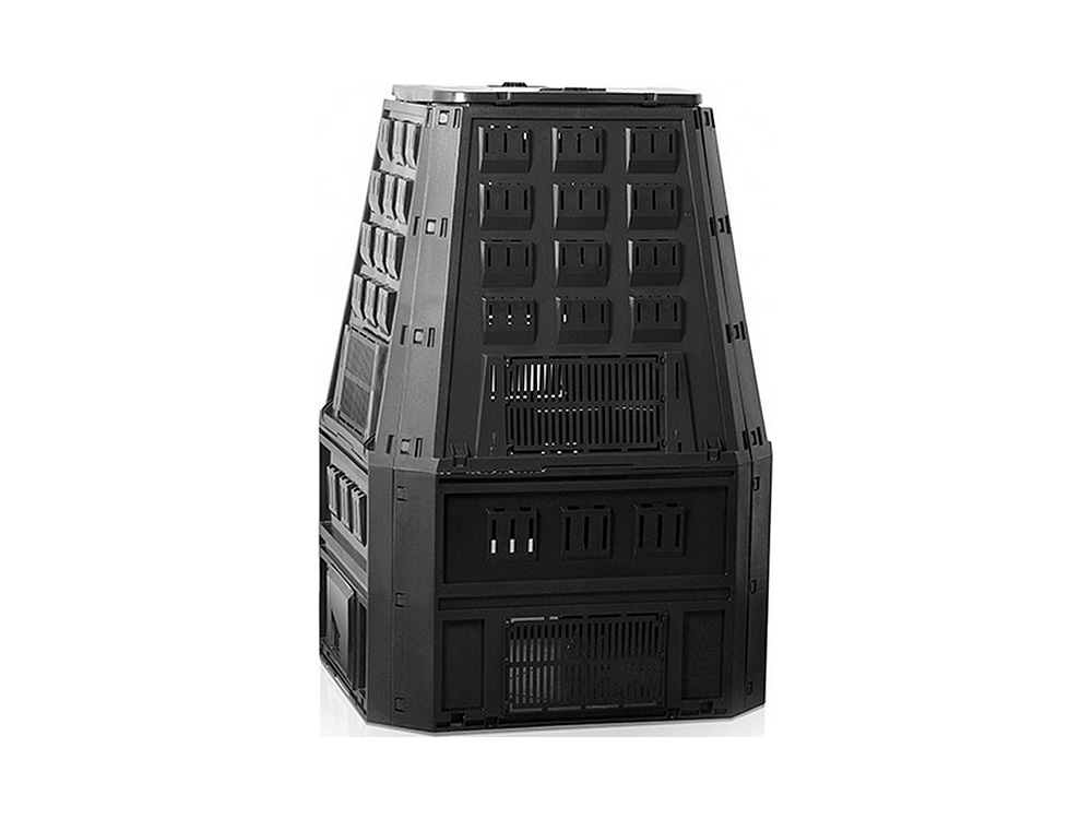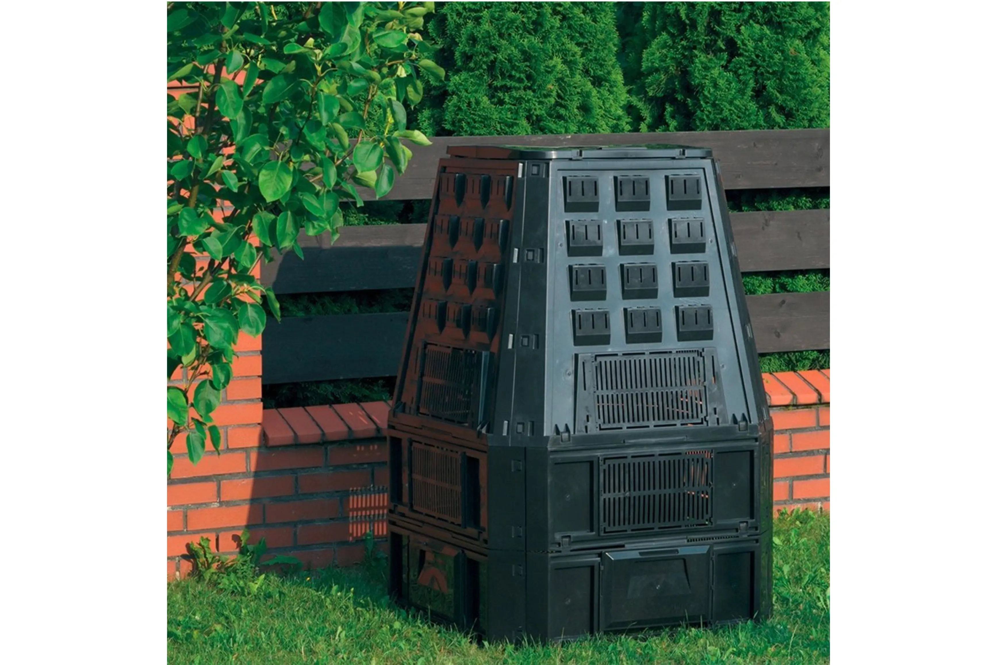 Zwarte compostton met een extra grote inhoud van 850 liter, perfect voor groente-, tuin- en fruitafval.