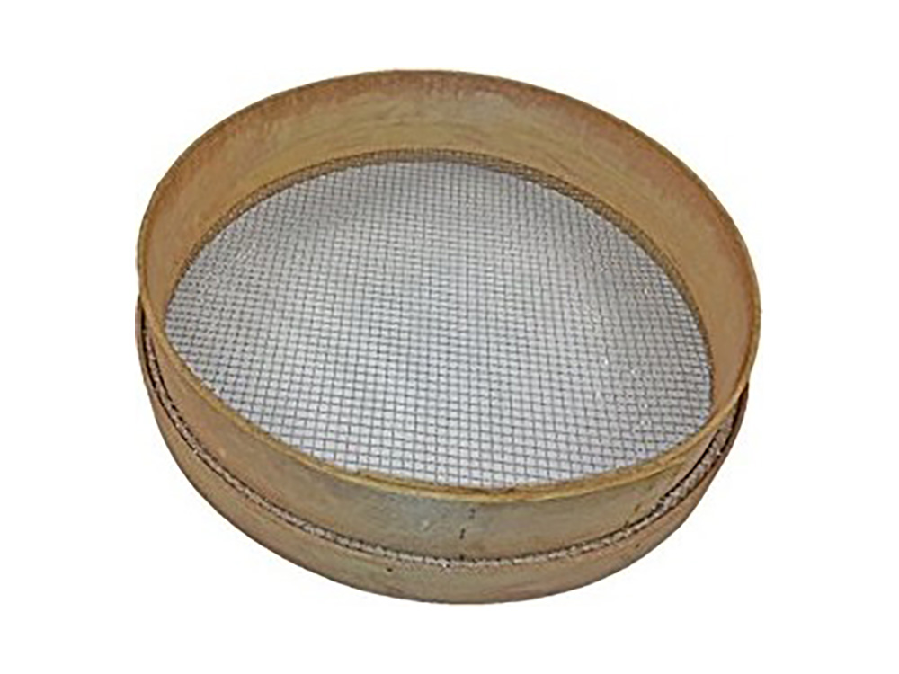 Eenvoudige grote ronde grondzeef in hout met vierkante mazen, ideaal voor het zeven van compost, potgrond, zaai- en stekgrond,...