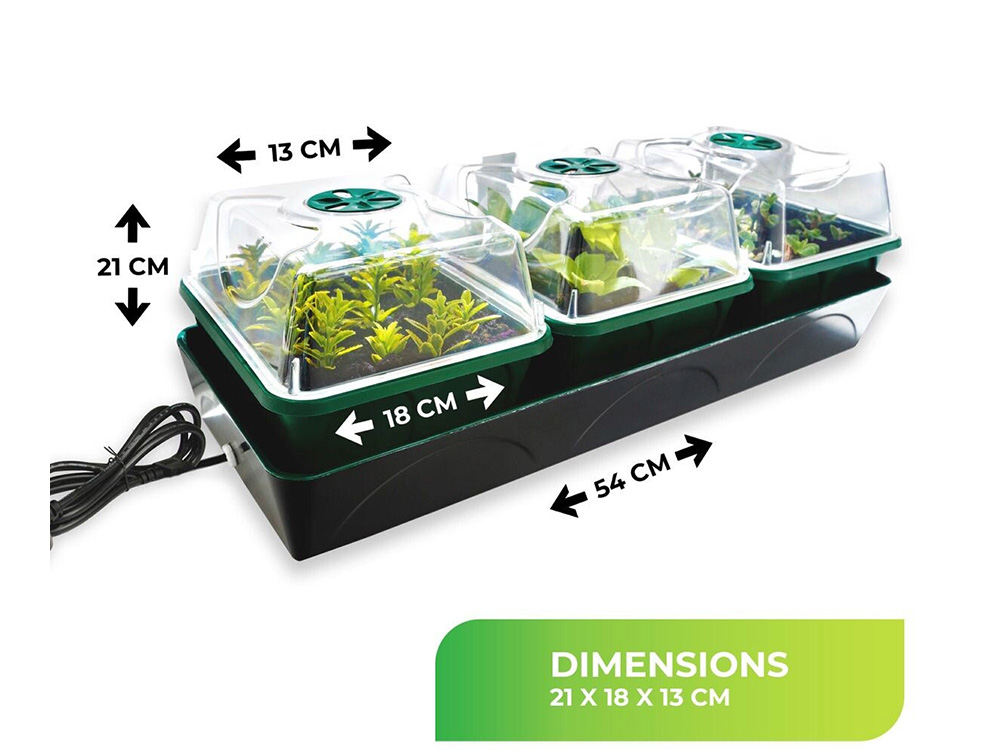 Zaai en stek succesvoller met deze driedelige kweekkas met bodemverwarming en waterreservoir. Het is een eenvoudig te gebruiken elektrische kweekkas voorzien van een energiezuinige verwarmde bodem en aangegoten stekker met elektriciteitssnoer van 190 cm. Deze driedelige kweekbak met verwarmde bodem en waterreservoir met capillaire mat is een must voor elke plantenkweker.