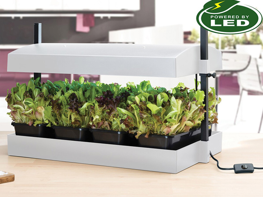 Ideaal voor elke plantenliefhebber. Deze compacte kweekbak met groeilicht laat je toe om vroeger te starten met het zaaien van allerlei gewassen zoals sla, kruiden, tomaten, pepers,.. Met deze kweekbak kun je eveneens het hele jaar door snijsla, kruiden en andere gewassen telen. Kan worden gebruikt in de keuken op het aanrecht of op een tafel. Geen slappe, lange en schuin groeiende zaailingen meer. Dankzij het groeilicht kan je vanaf nu in elk jaargetijde stevige, rechtopstaande zaailingen kweken.