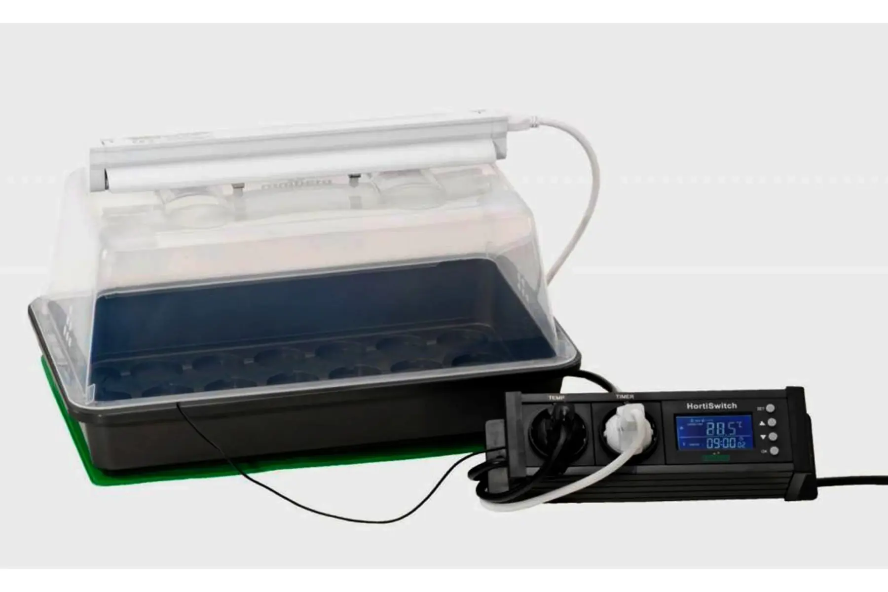 Kweekkas met groeilamp + verwarmingsmat met thermostaat
