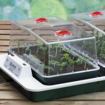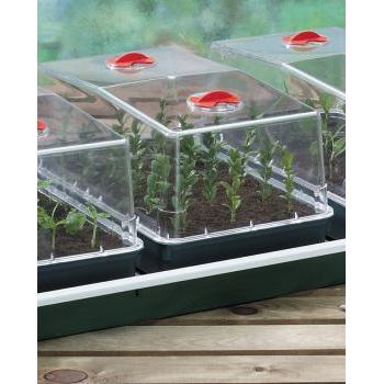 Deze reuzenpropagator is ontworpen voor de enthousiaste tuinier om volop in te zaaien en te stekken. Dit is onze grootste elektrisch verwarmde zaaibak, compleet met 3 grote geventileerde kweekkassen. Dit unieke model geeft jou de kans om meerdere soorten tegelijkertijd te kweken.