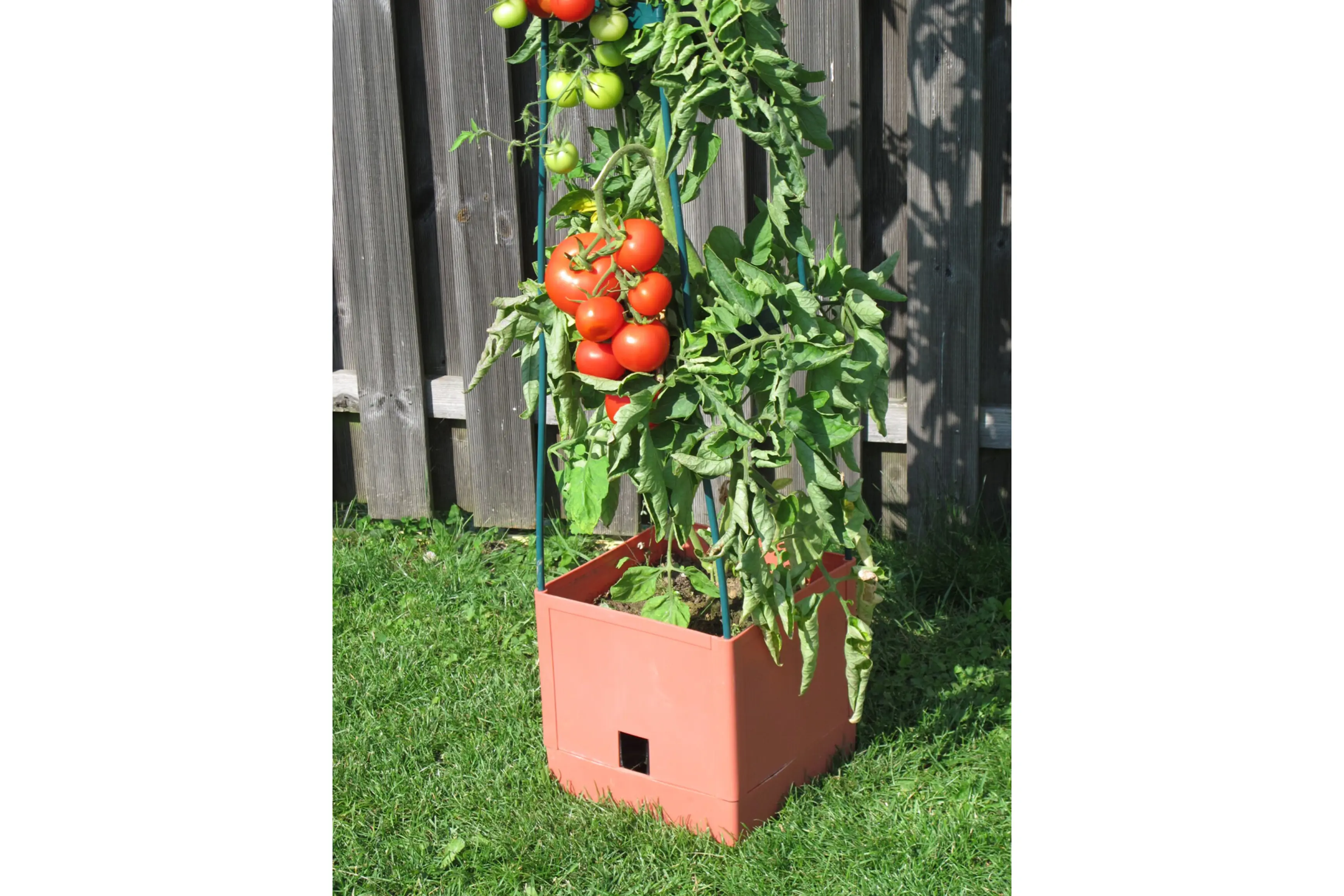 De plantenbak heeft een inhoud van 16 liter en is voorzien van een waterreservoir van 2 liter. Dit zorgt voor een gelijkmatige watertoevoer naar de wortels van de planten wat de kans op tomatenrot verkleint.