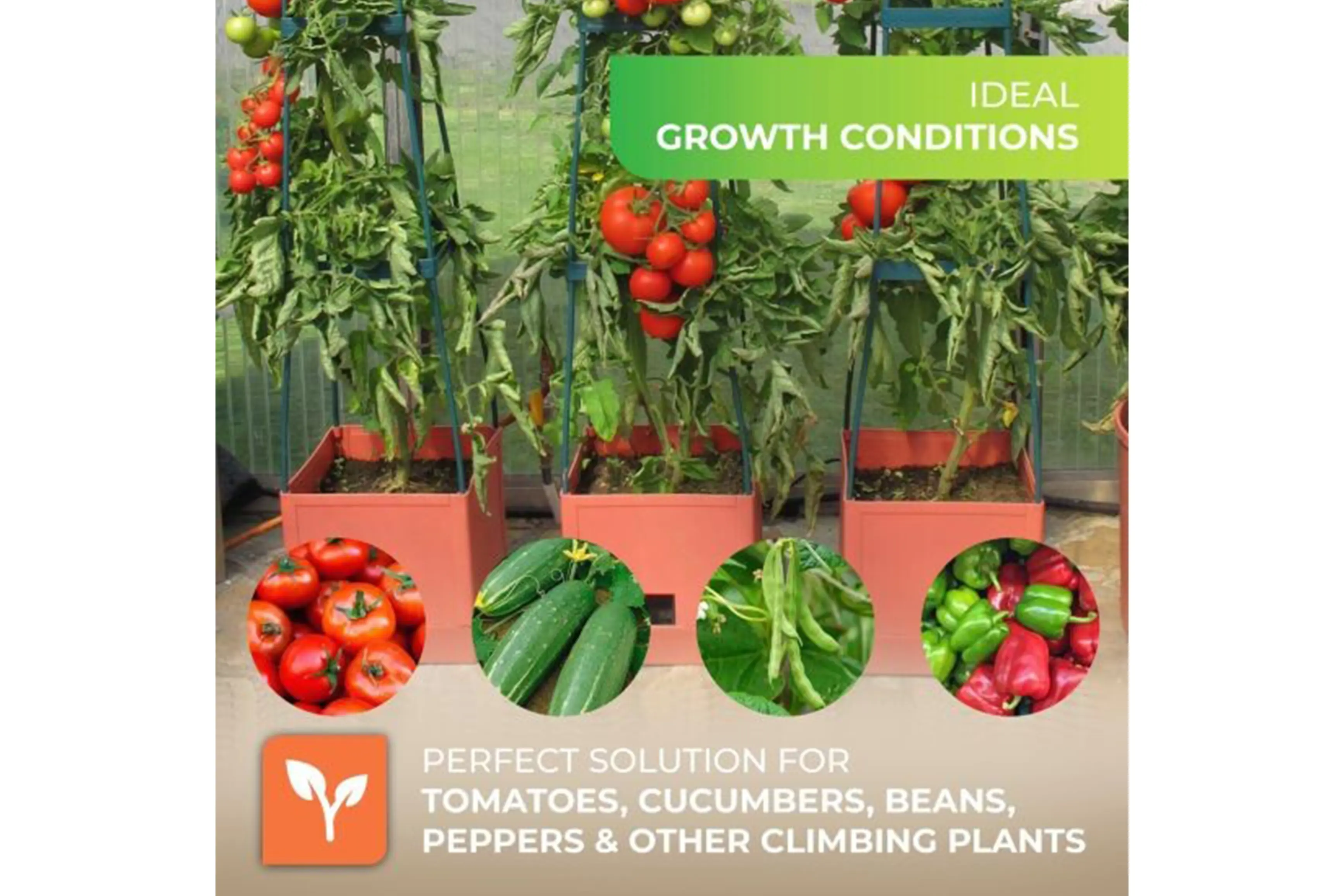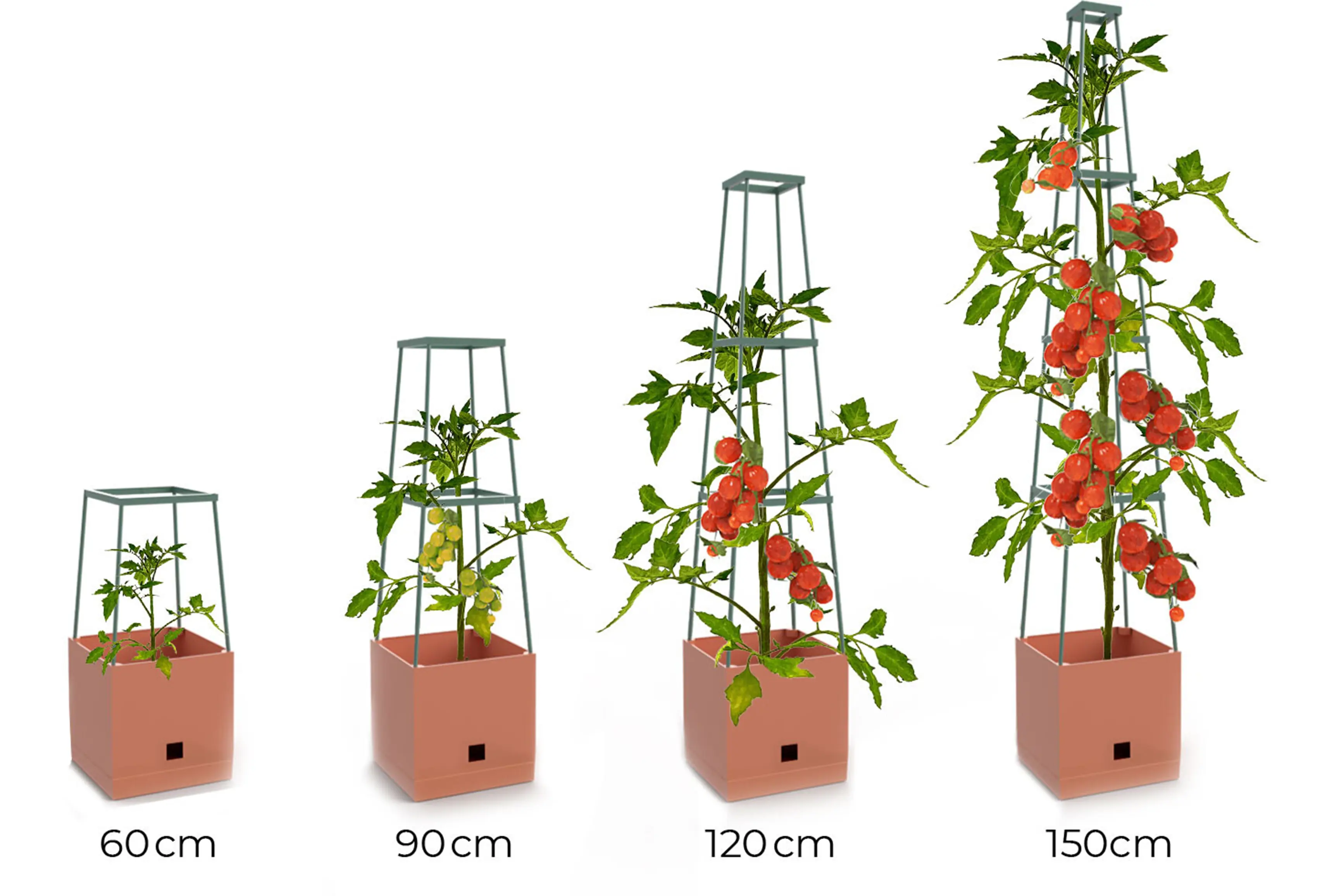 De Maxitom plantentoren is de ideale plantondersteuning voor onder andere tomaten. De complete set neemt weinig ruimte op het terras, het balkon of in de tuin. Naast tomaten kan je er ook nog andere groenten in kweken zoals augurken, komkommers, bonen, erwten en paprika's.