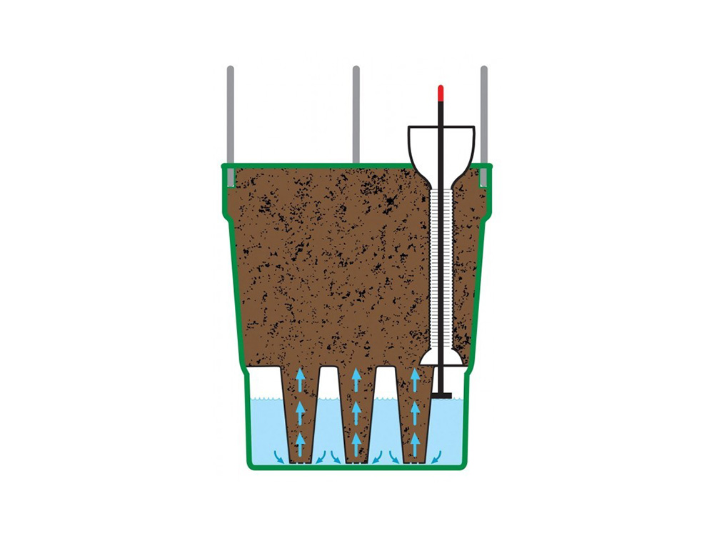 De pot is voorzien van een stevige, 150 cm hoge plantondersteuning bestaande uit vier ringen en aluminium geleiders. De toren met 4 niveaus zorgt voor een perfecte groei.