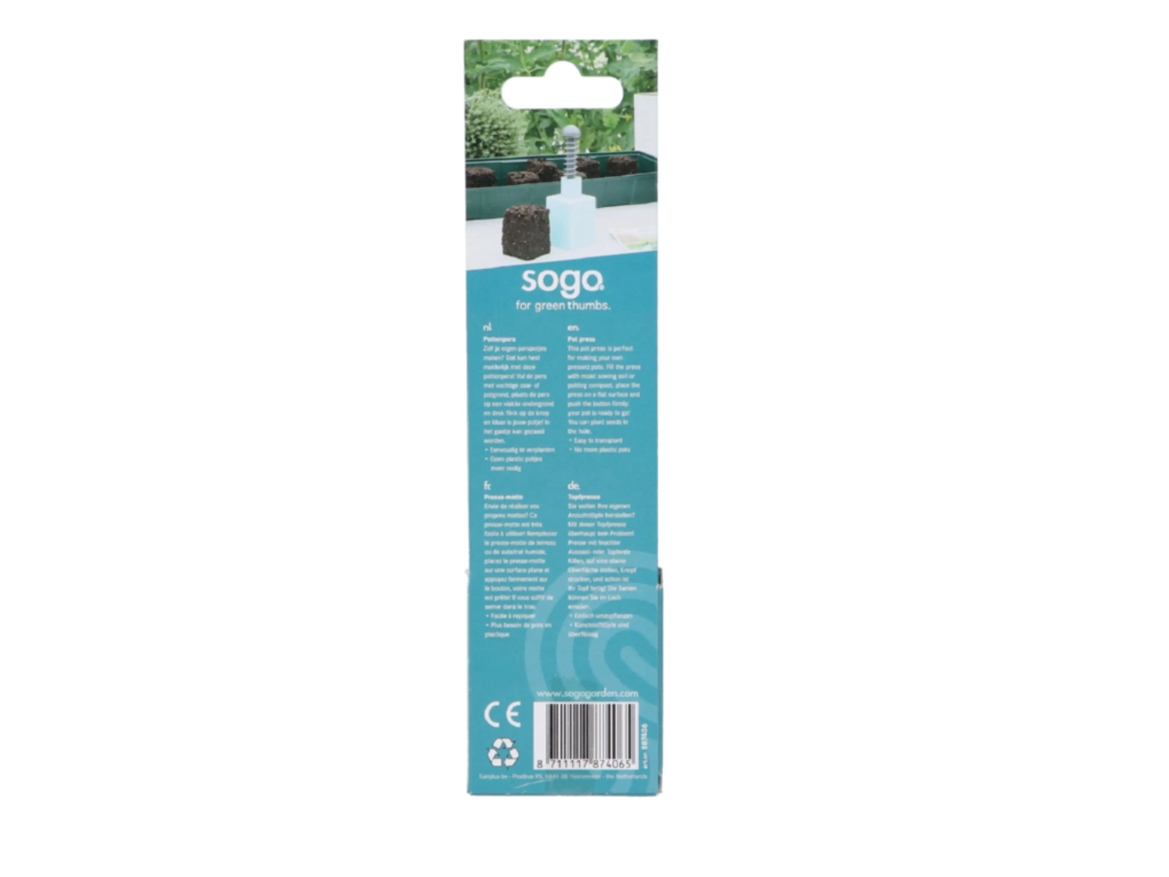Zelf je eigen perspotjes maken? Dat kan heel makkelijk met deze pottenpers! Vul de pers met vochtige zaai- of potgrond, plaats de pers op een vlakke ondergrond en druk flink op de knop en klaar is jouw potje! In het gaatje kan gezaaid worden.