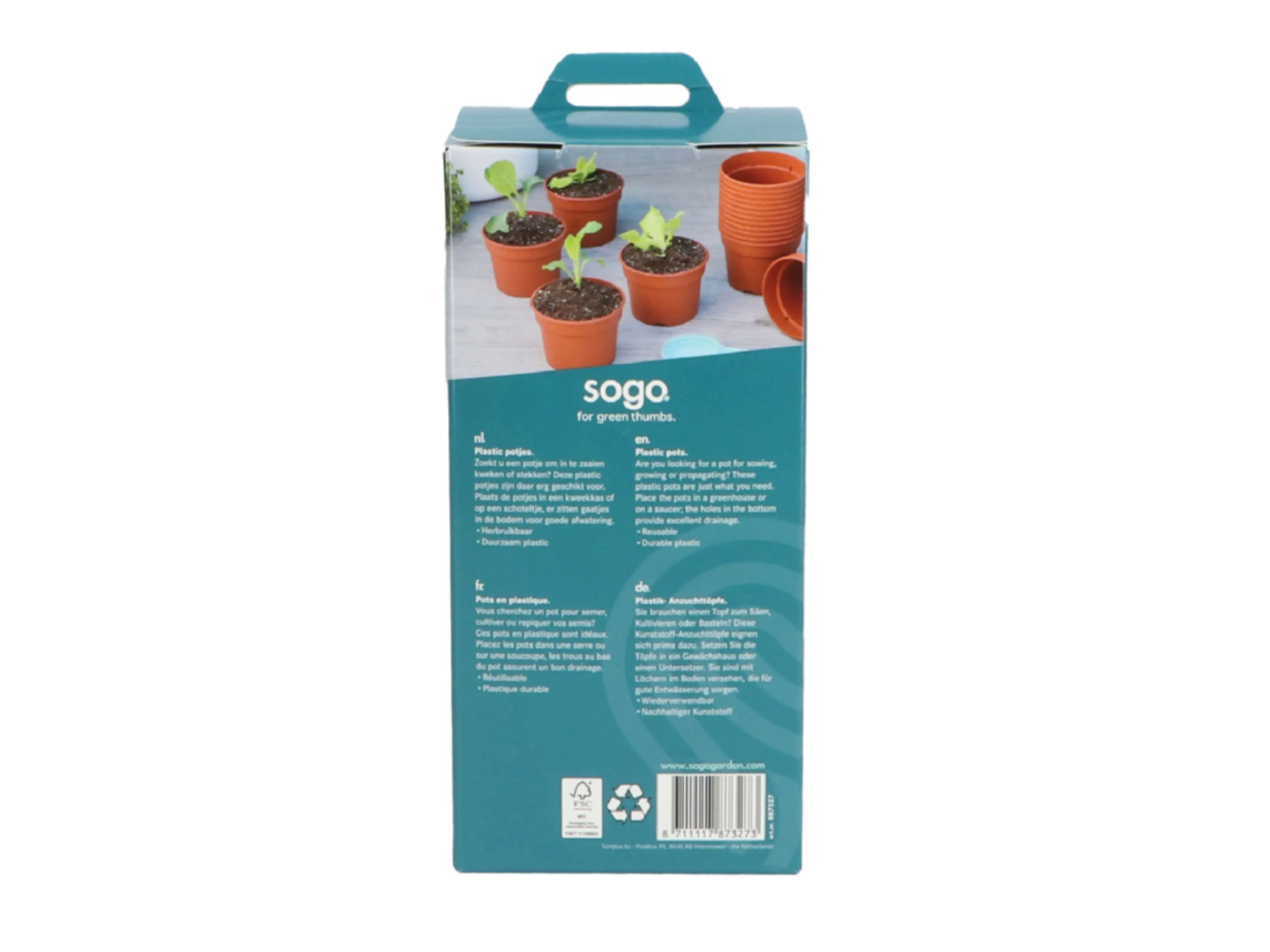 Zoekt u een potje om in te zaaien, kweken of in te stekken? Deze terra kleurige potjes zijn gemaakt van duurzaam plastic. Plaats de potjes in een kweekkas of op een schoteltje, er zit een gaatje in de bodem voor goede afwatering.