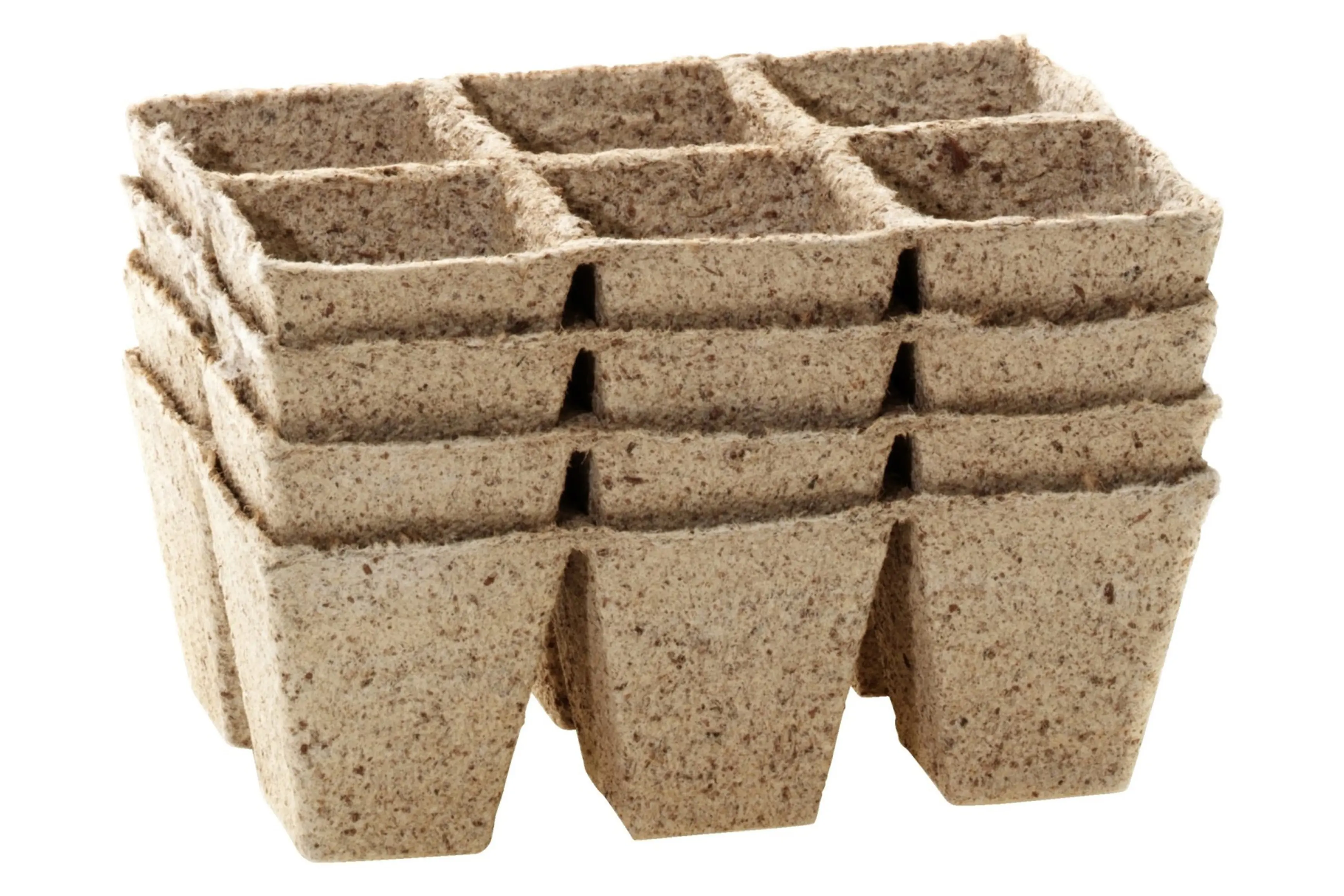 Biologisch afbreekbare vierkante plantpotjes gemaakt uit samengeperste vezels. De potjes zijn 100% vrij van turf en bevatten geen enkel chemisch additief.